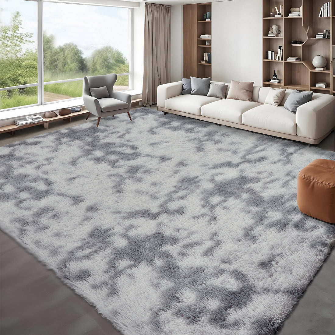 Garvee Fluffy & Sheepskin Dark Grey 10x13 Plush Thick Shag Rug, Non-Slip Non-Shedding for Living Room Bedroom Kids Dorm
