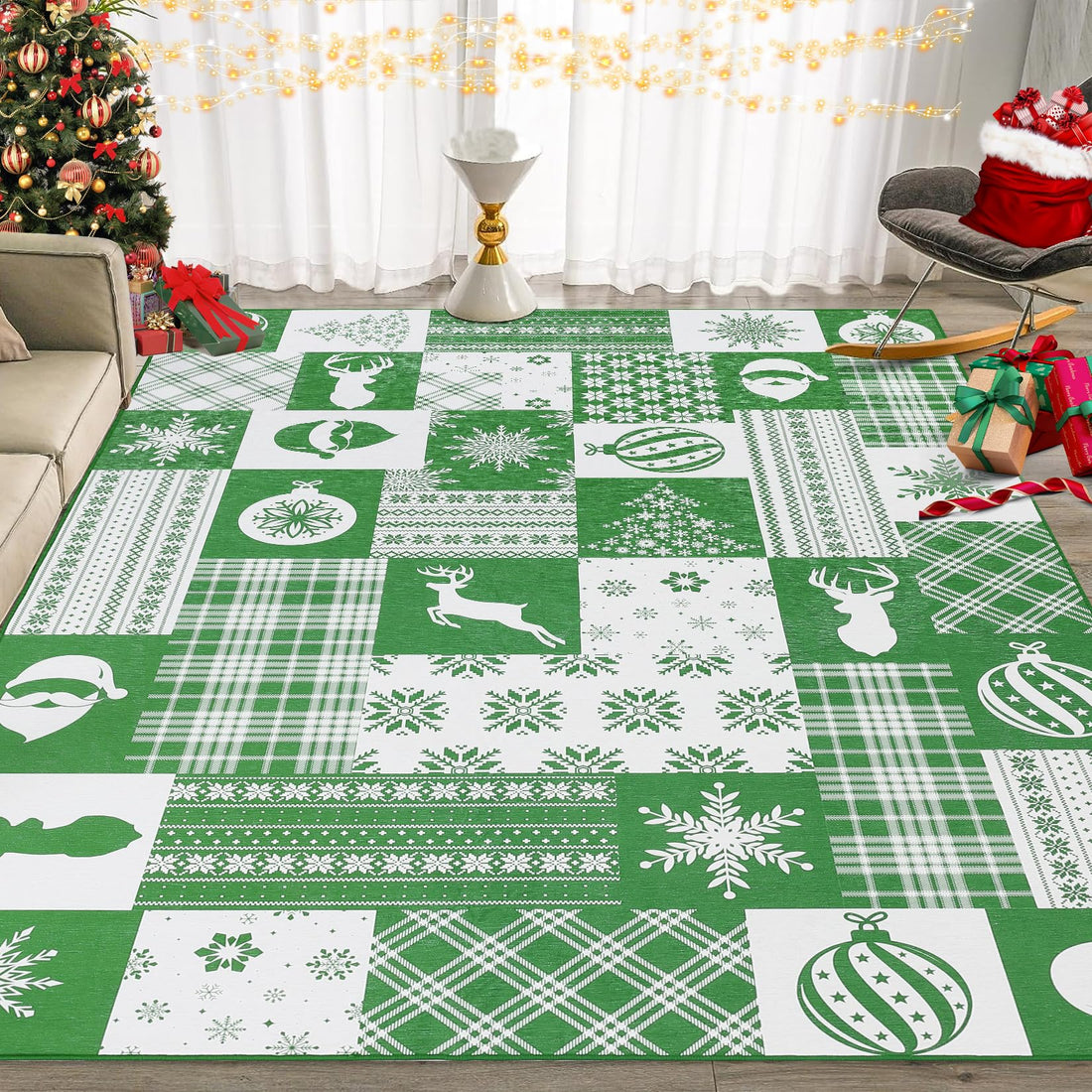 Garvee Christmas Black 2x10 Runner Rugs, Non-Slip Washable Kitchen Rug with Elk Statue, Ultra-Thin for Bedroom Hallway