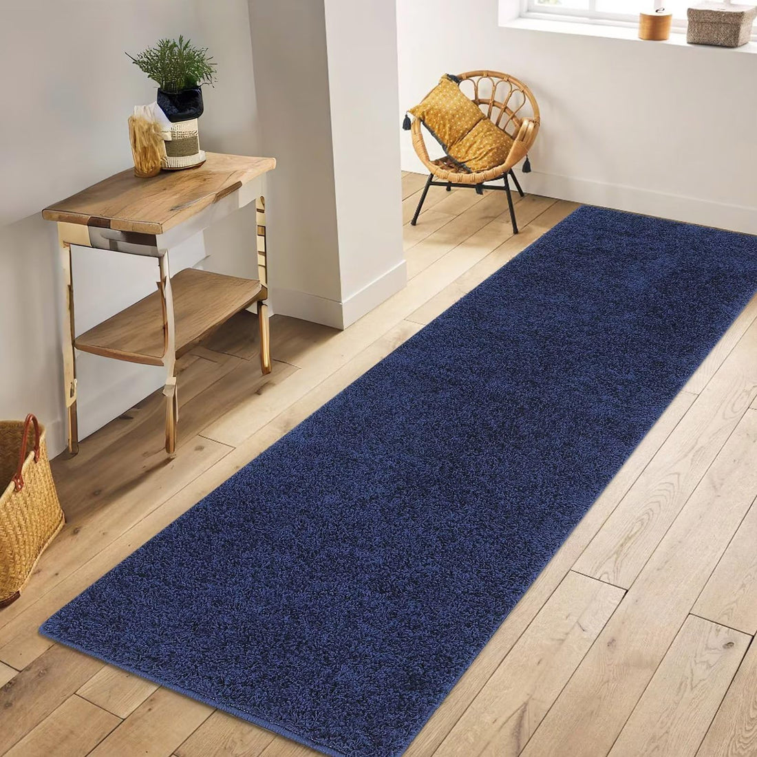 Garvee Fluffy & Sheepskin Navy Blue 2x8 Fuzzy Plush Rug, Soft Carpet for Living Room Bedroom Dining Decor