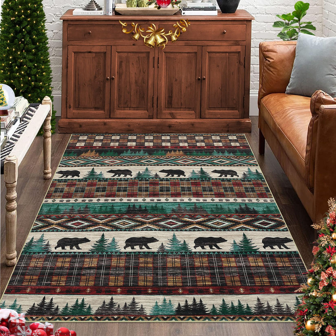 Garvee Christmas Black 3x5 Area Rugs, Washable Soft Non-Slip Living Room Carpet Red Ultra-Thin