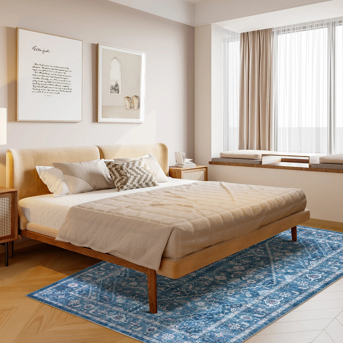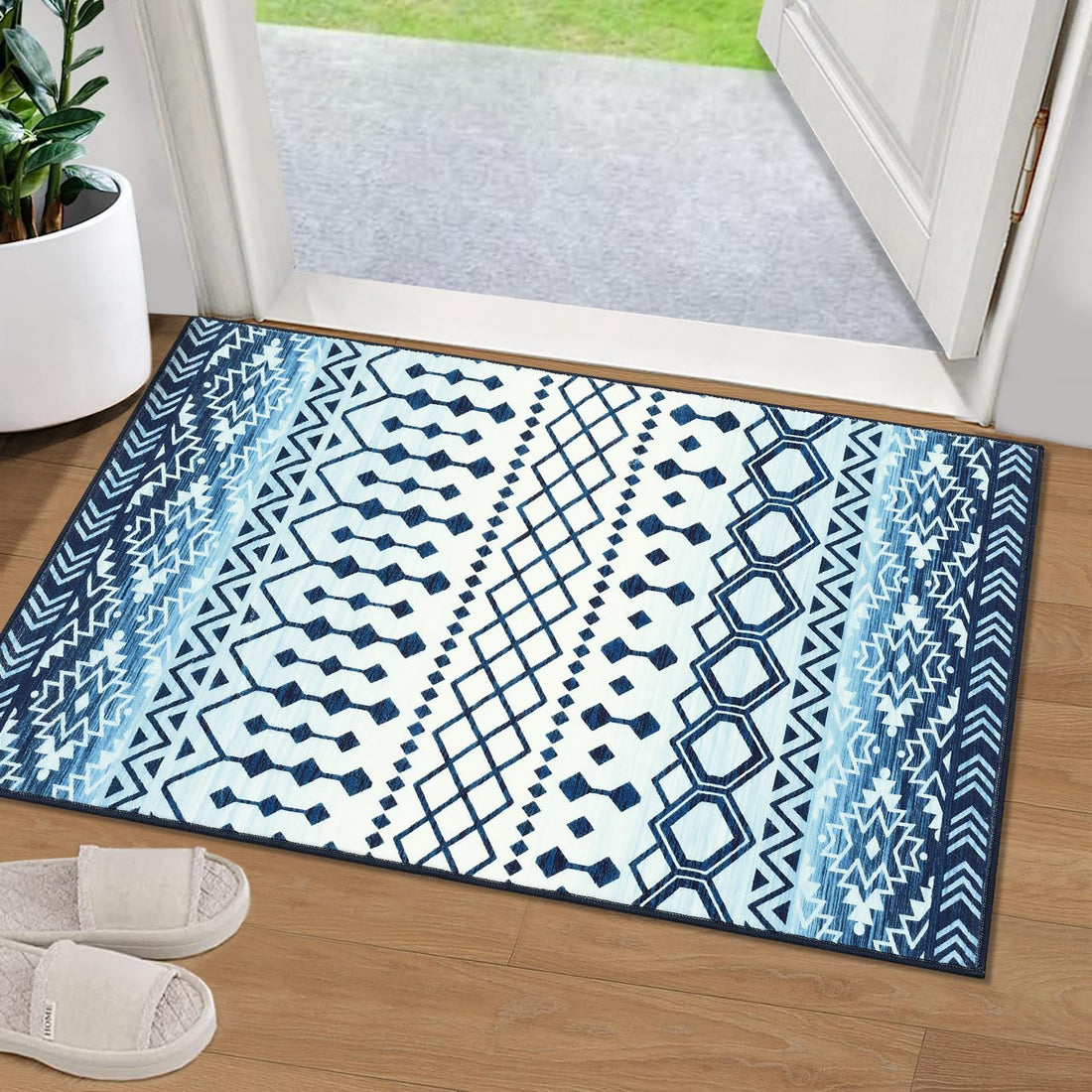 Garvee Boho Blue 6x9 Area Rug Washable Bedroom Rug, Vintage Distressed Blue Rug Indoor Soft Non Slip Carpet Low Pile Aesthetic Rug Throw Carpet for Living Room Bedroom Nursery Home Office