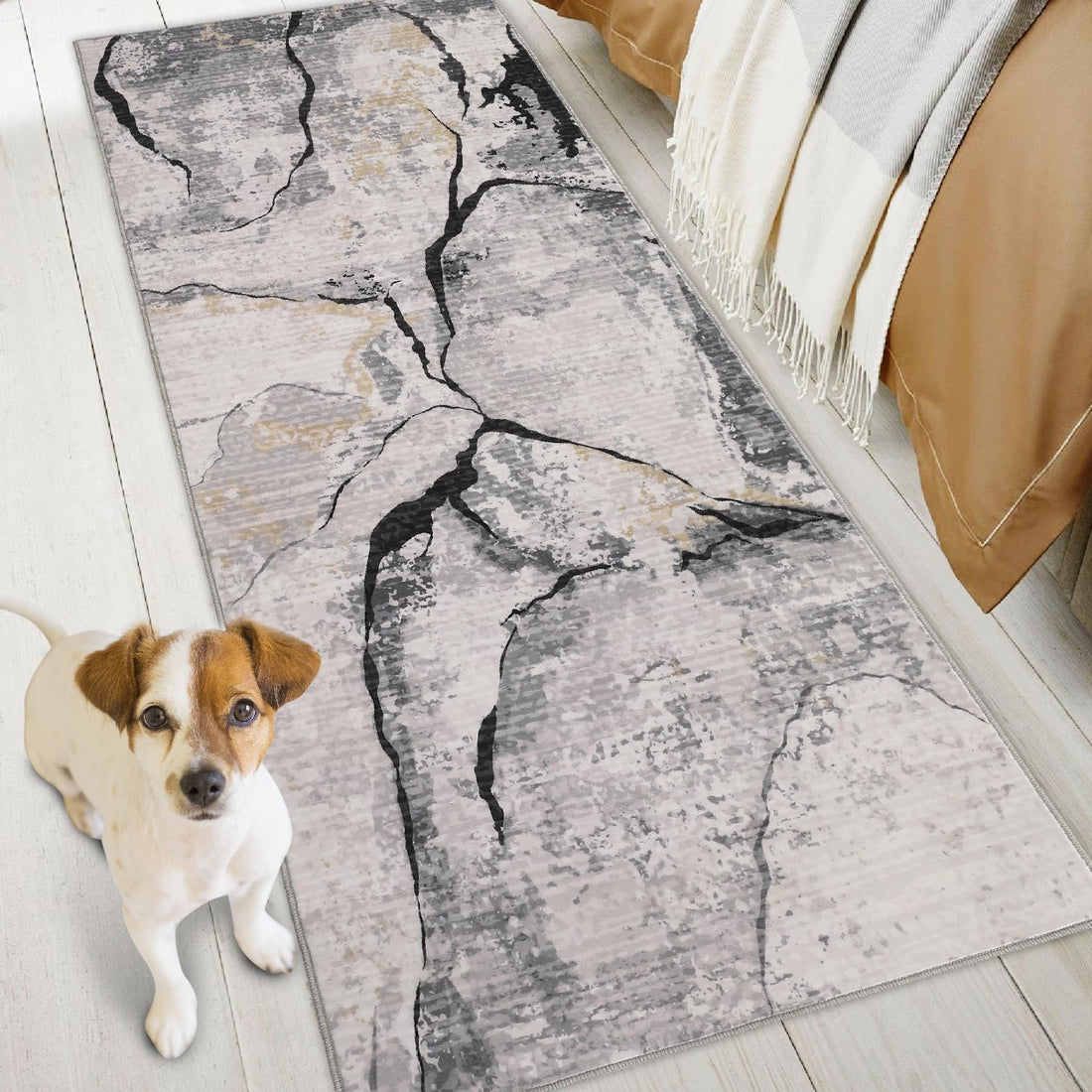 Garvee Abstract Black 2x6 Modern Marble Runner Rug, Washable Kitchen Runner Rug Marble Pattern Rug Runners for Hallways Non Slip, 2’x6’ Runner Rug for Bedroom Entryway