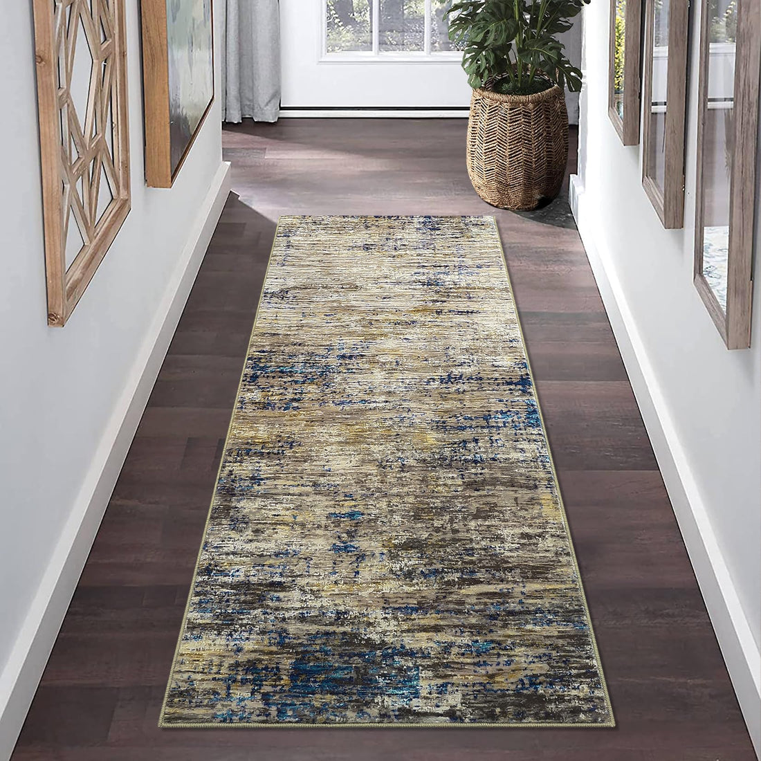 Garvee Modern Abstract Area Rug Golden Blue 5x7 Machine Washable Non Slip Accent Rug for Bedroom Living Room Nursery Office Kitchen