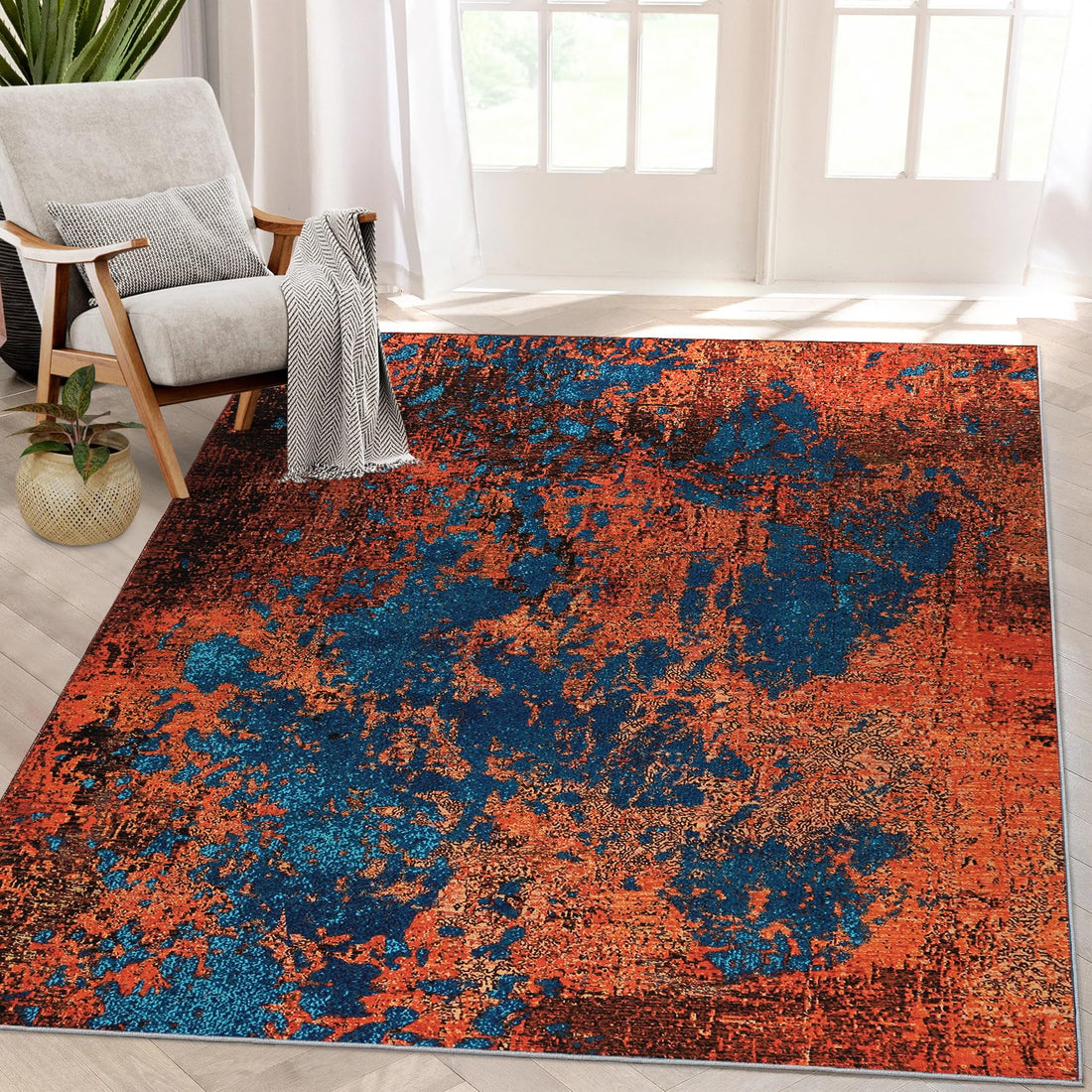Garvee Abstract 8x10 Large Living Room Rugs Washable Soft Non Slip Area Rug for Bedroom Indoor Modern Stain Resistant Ultra Thin Floor Carpet for Dining Room Nursery Room, Blue Yellow