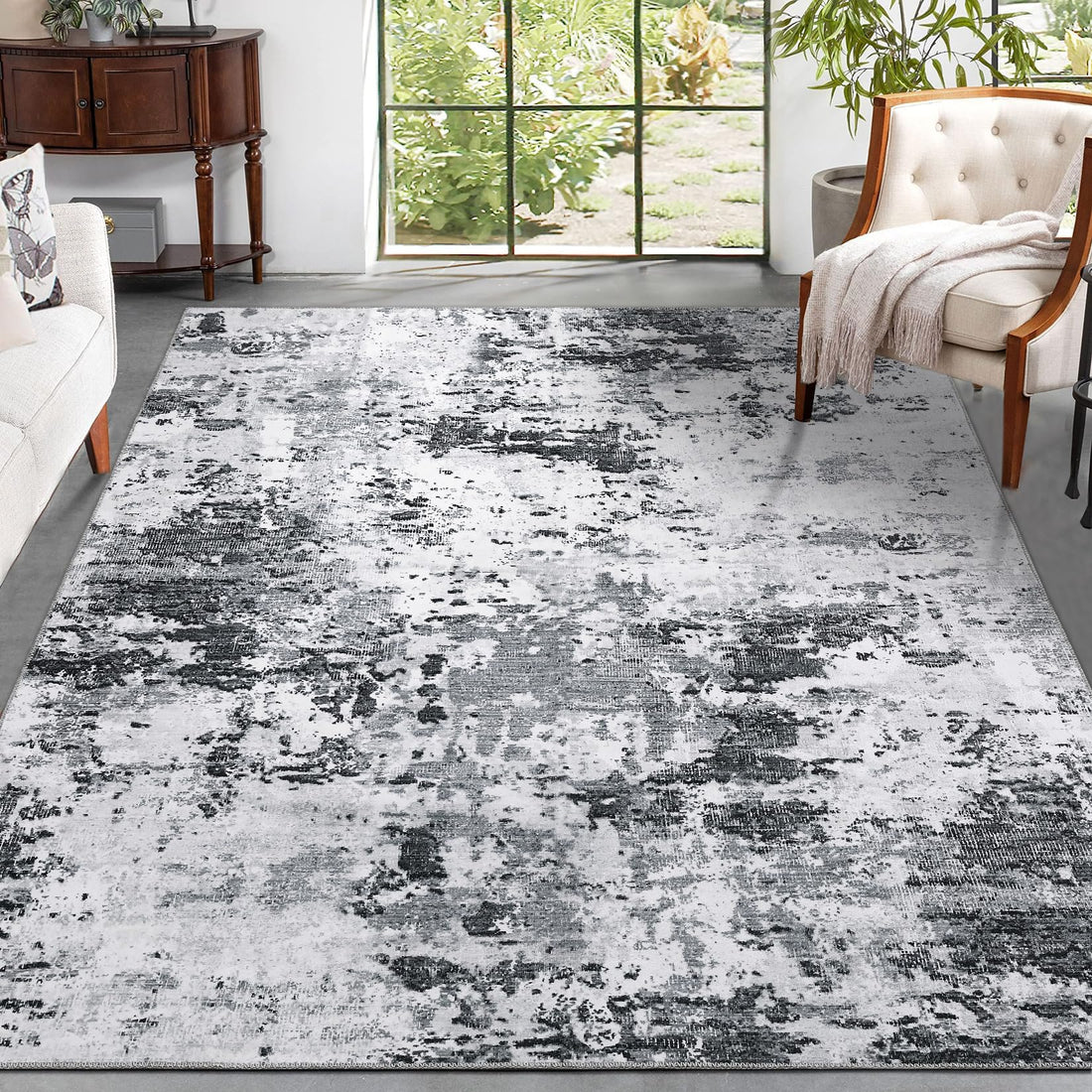 Garvee 9x12 Ultra Large Area Rug Distressed Gray Rug Anti Slip Low Pile Floor Rug Washable Stain Resistant Soft Non Shedding Modern Abstract Bedroom Living Room