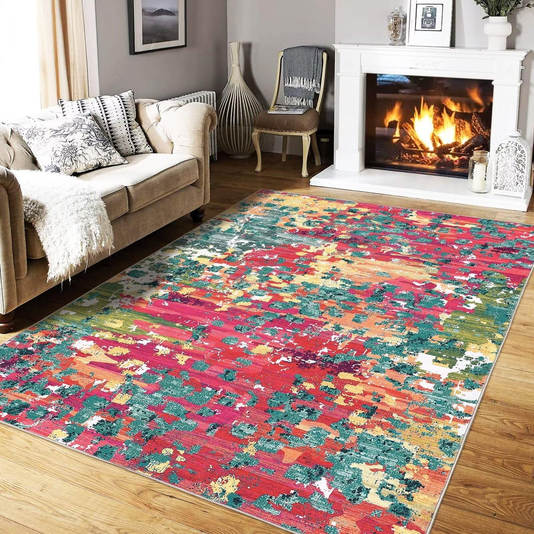 Garvee 10x13 Washable Large Area Rug Non Slip Low Pile Abstract Indoor Accent Rug Multi Color