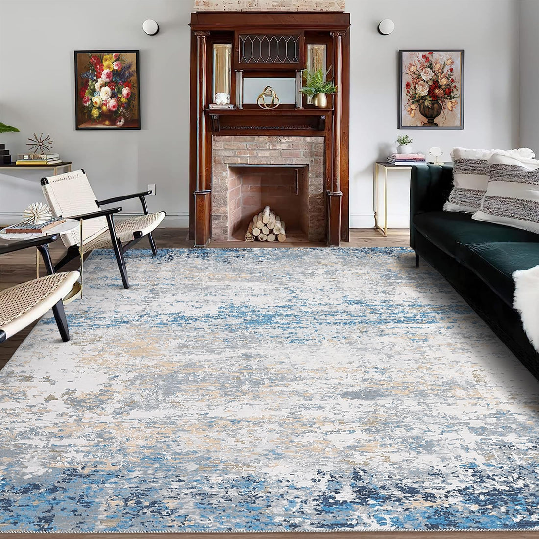 Garvee Large Area Rug 10x13 Washable Rugs Modern Abstract Distressed Throw Carpet For Living Room Stain Resistant Throw Carpet With Non-Slip Backing Low Pile Floor Cover For Nursery Apartment,Blue