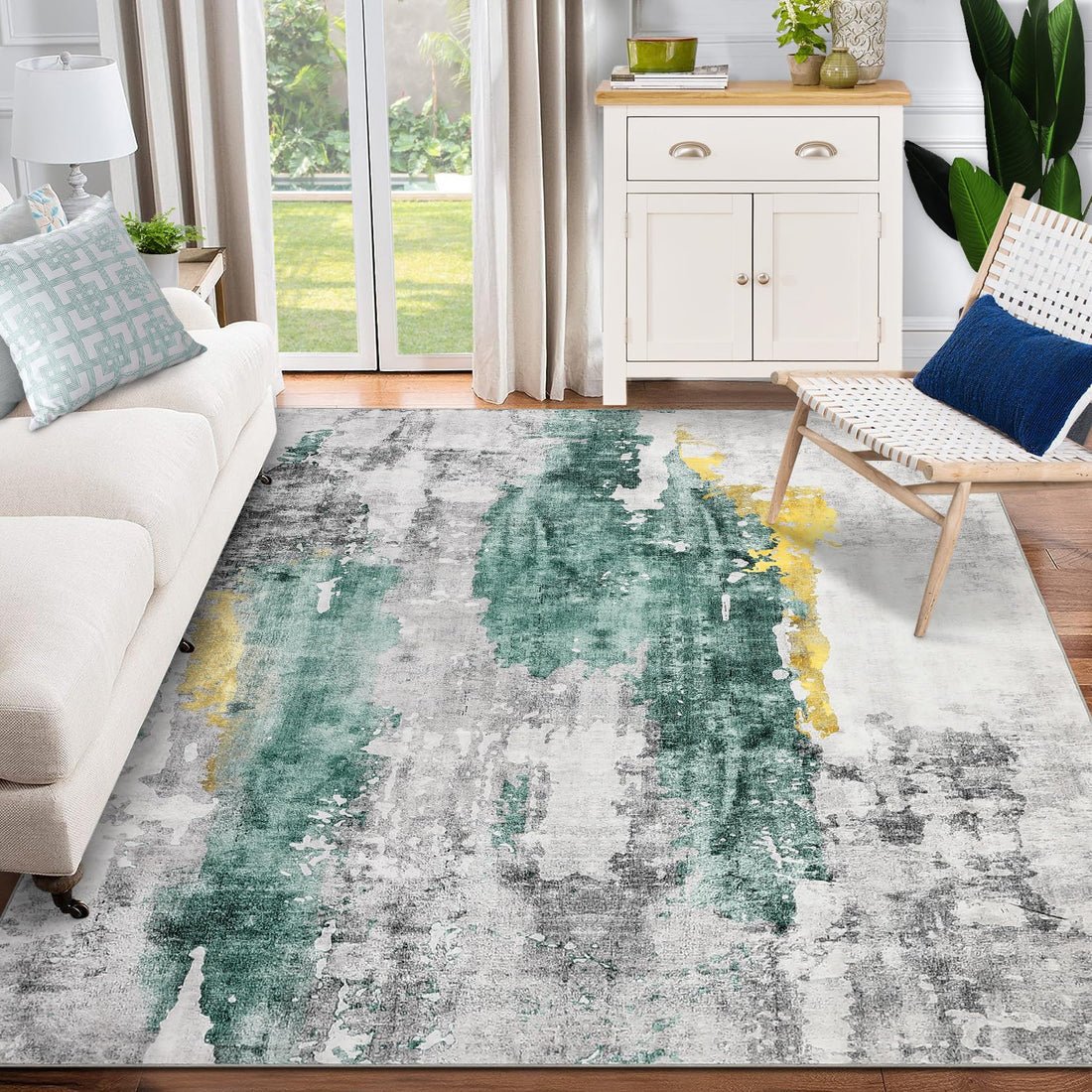 Garvee Modern Abstract 10x13 Area Rugs for Living Room, Large Washable Bedroom Rug, Low Pile, Non Slip, Green