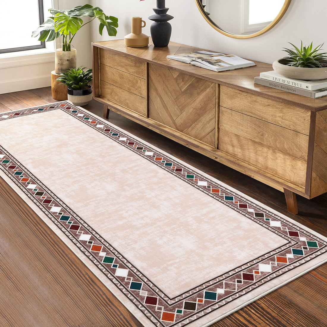 Garvee Bordered Non-Skid Washable Non-Slip Area Runner Rug for Entryway Laundry Room Bedroom