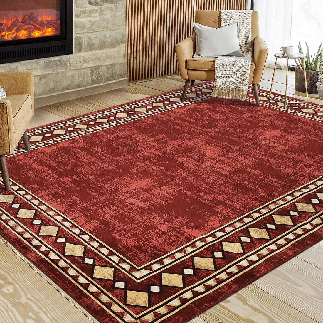 Garvee Bordered Distressed Printed Area Rug Stain Resistant Home Decor Carpet for Versatile Use in Living Room, Bedroom, and Entryway