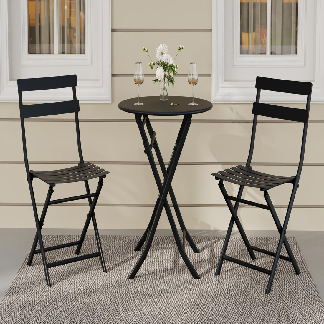 Garvee 3-Piece Folding Patio Bistro Set - Round Table & 2 Chairs, Weather-Resistant, Space-Saving, Premium Frame Outdoor Furniture, Black