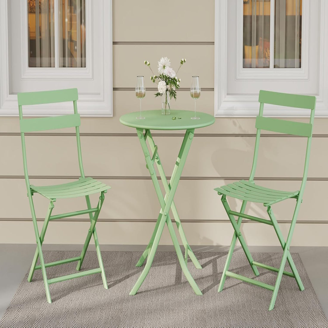 Garvee Outdoor 3 Pieces Patio Bistro Set, Waterproof Folding Coffee Table and Chairs Sets, Green