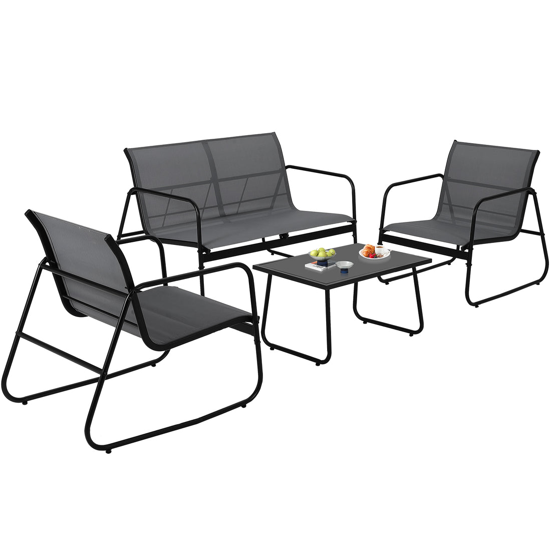 Garvee Textilene Patio Conversation Set with 2 Single Chairs, Loveseat, Tempered Glass Coffee Table, Powder Coated Steel Frame, Quick Dry, Outdoor Lounge