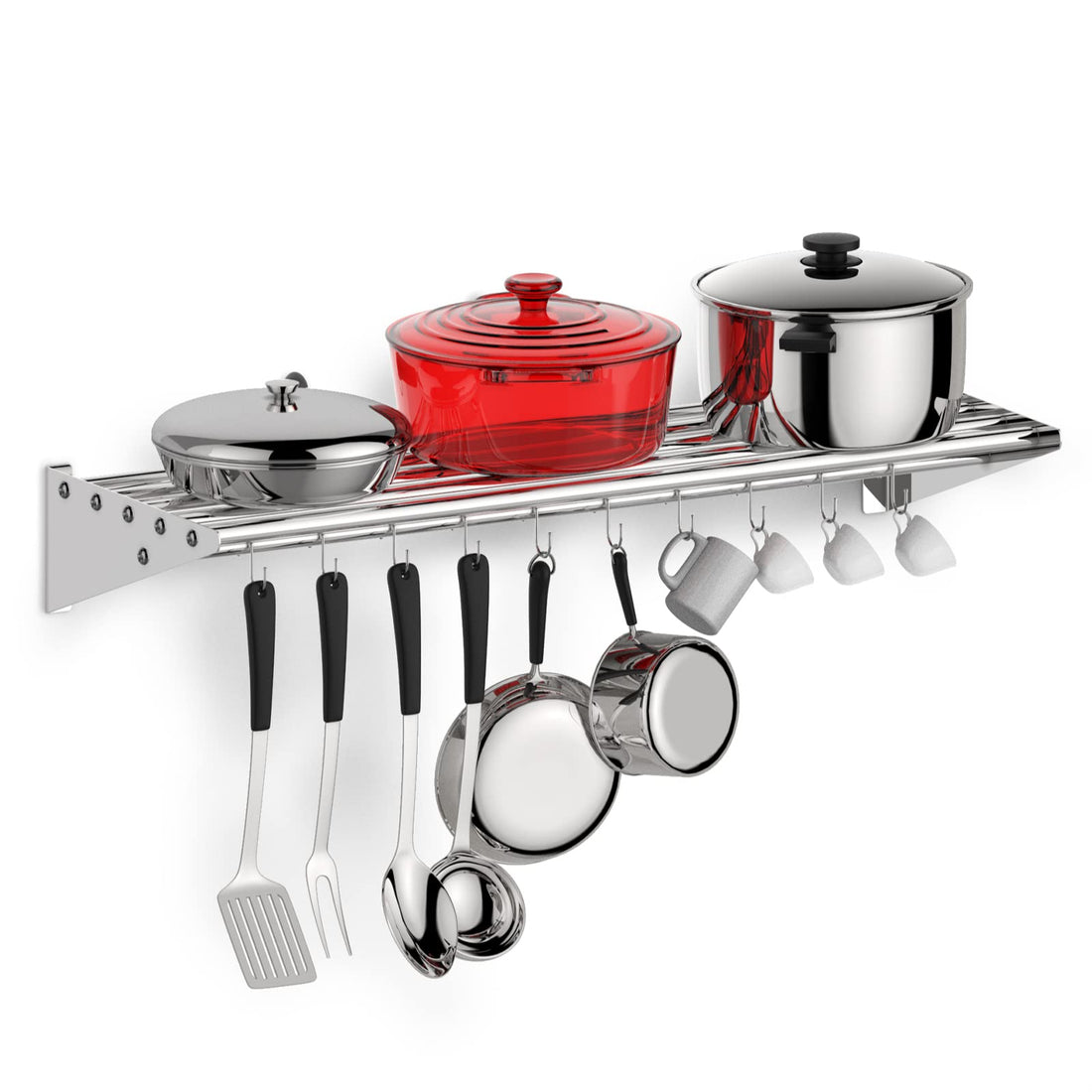 Garvee 12" x 36" Stainless Steel Shelf Pot Rack NSF Certified 165lb Metal Wall Shelf with 10 S Removable Storage Hooks for Kitchen Storage & Organization Durable Pot Holder
