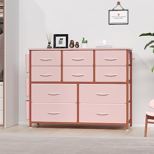 Garvee Wide 10 Drawer Dresser,TV Stand Entertainment Center Fabric Storage Dressers Drawers for Bedroom, Hallway, Nursery, Closets, Steel Frame, Wood Top (White)