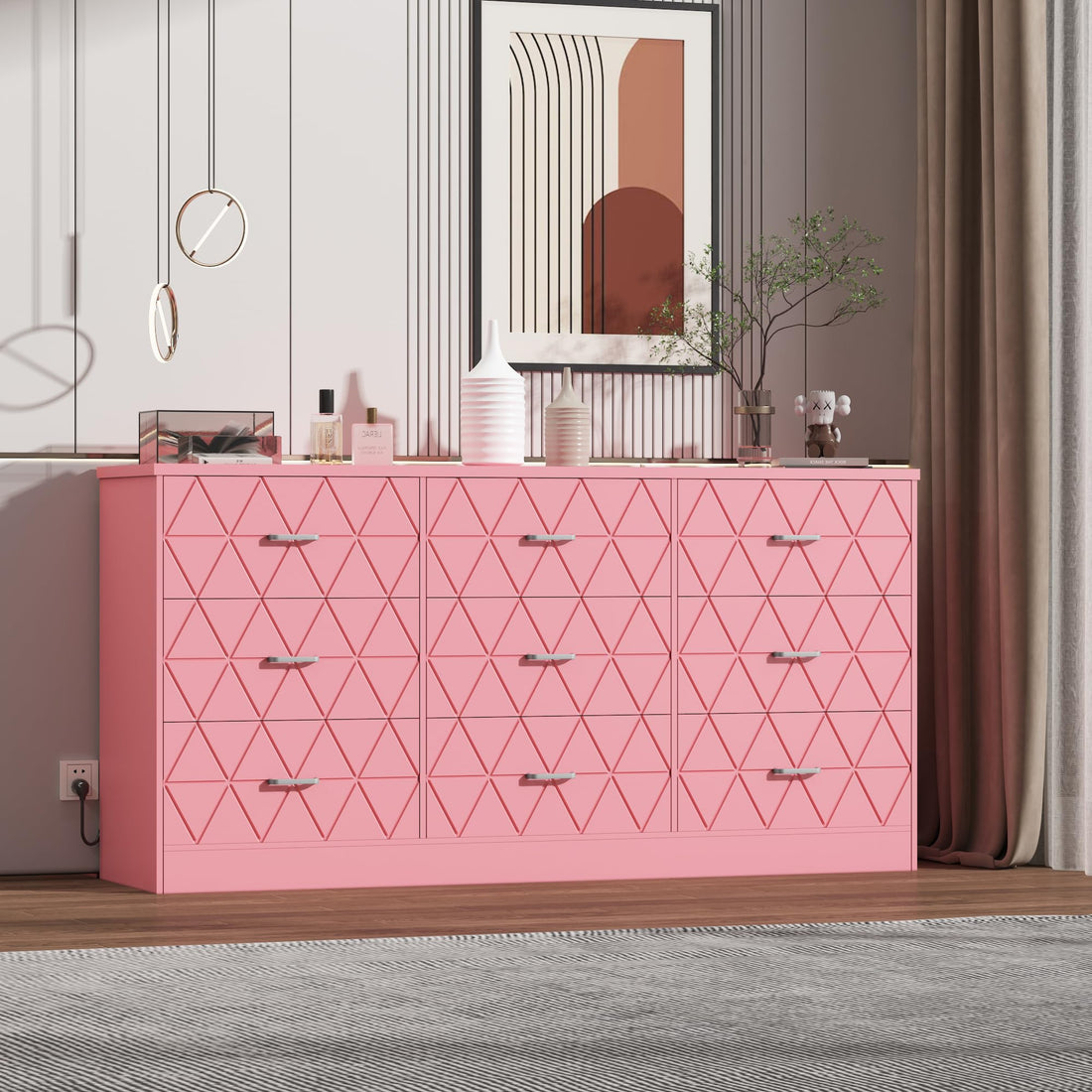 Garvee 8 Drawer Dresser, TV Stand Dressers Chest with Metal Handles, Wood Storage Dresser for Bedroom, Living Room, and Entryway, Pink