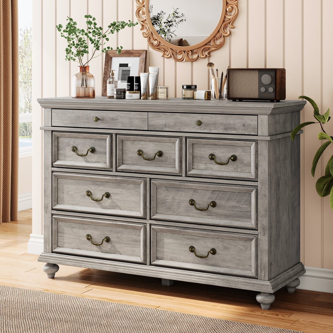 Garvee 47" Farmhouse Dresser with 9 Drawers, Rustic Wood Chest with Vintage Metal Handles for Bedroom, Large Storage Organizer for Living Room, Entrance, Grey