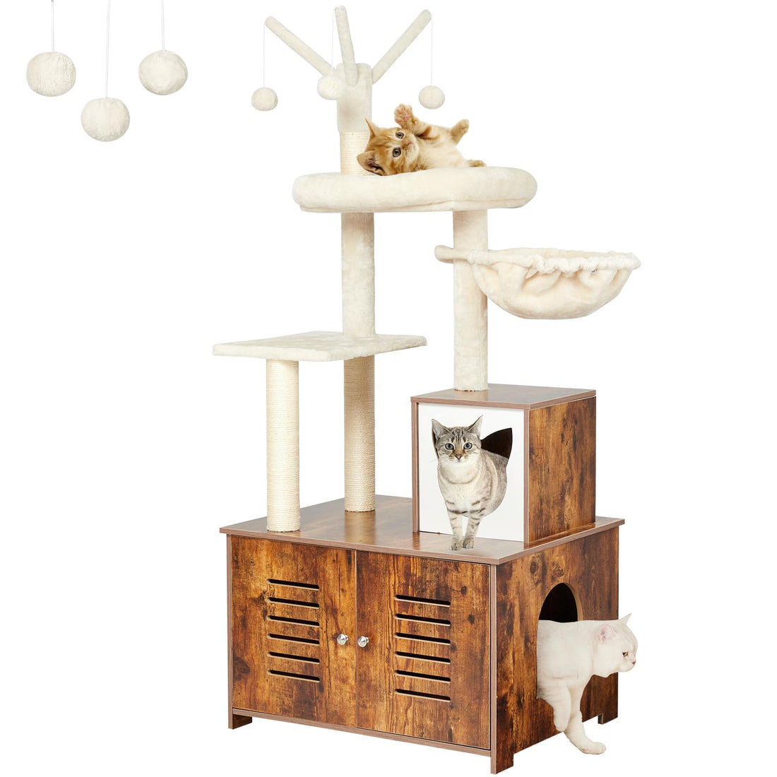 Garvee 48.8" 2-In-1 Hidden Litter Box & Cat Tree – Multi-Level Enclosure w/ Scratching Posts, Toys – Space-Saving Modern Furniture for Large Cats