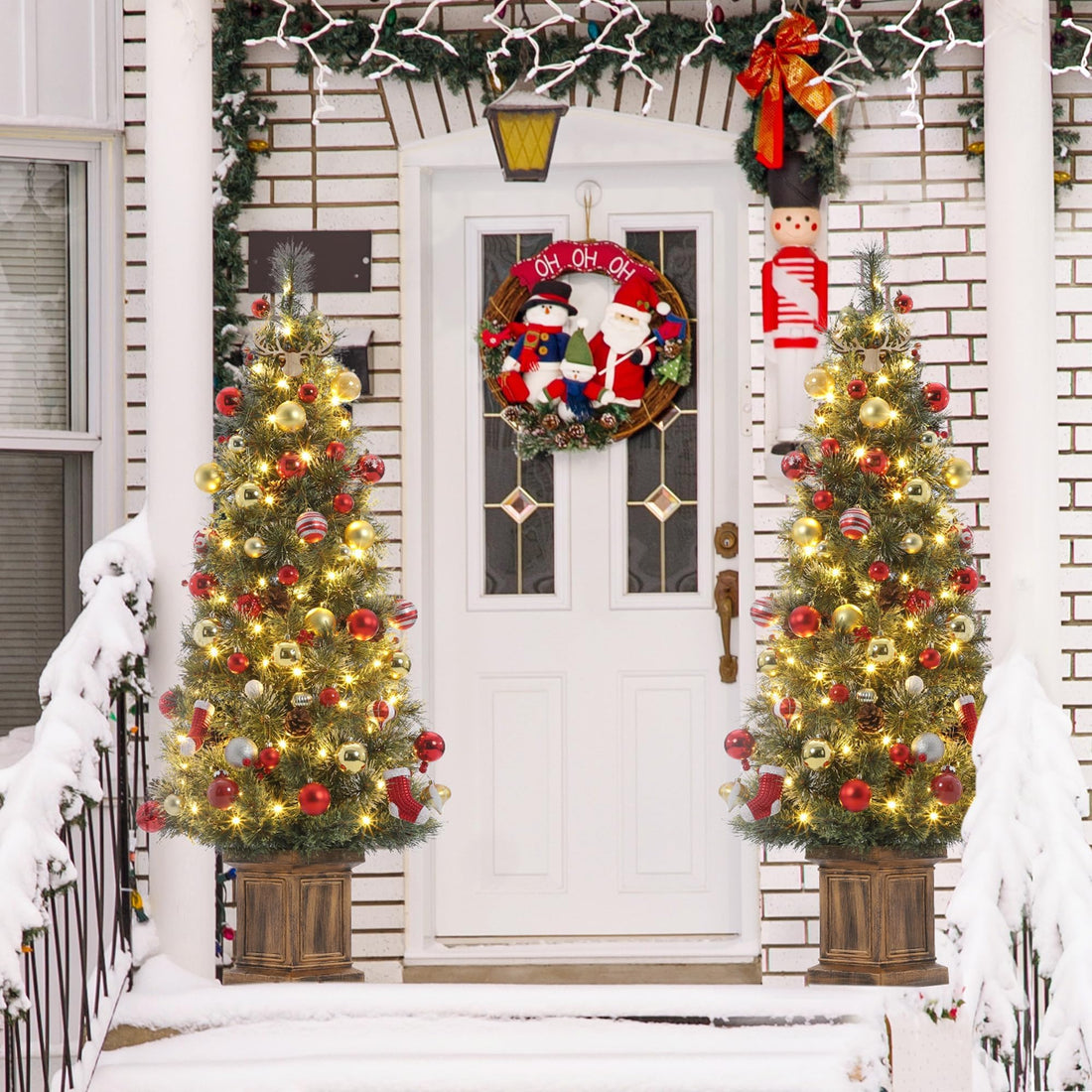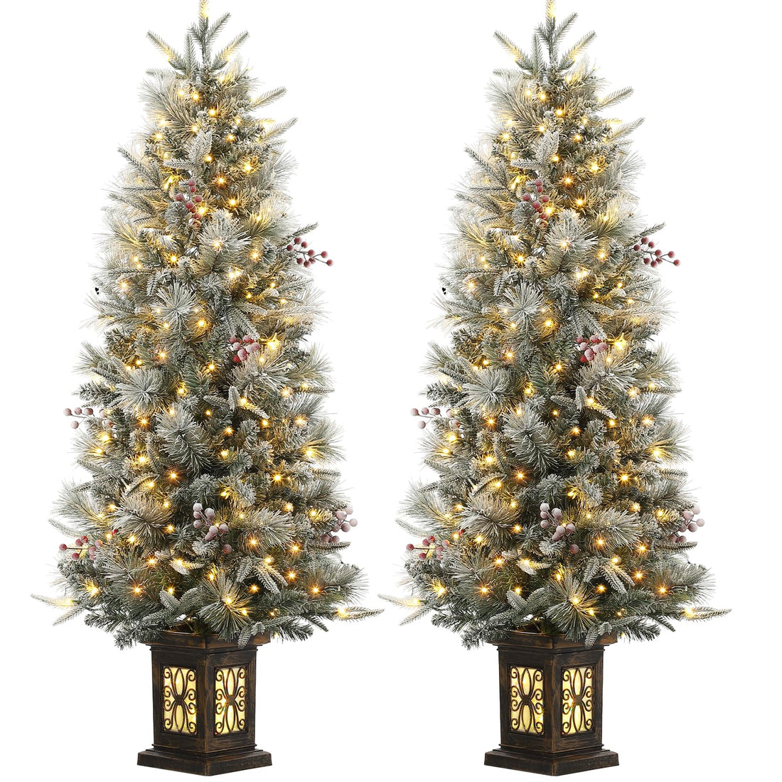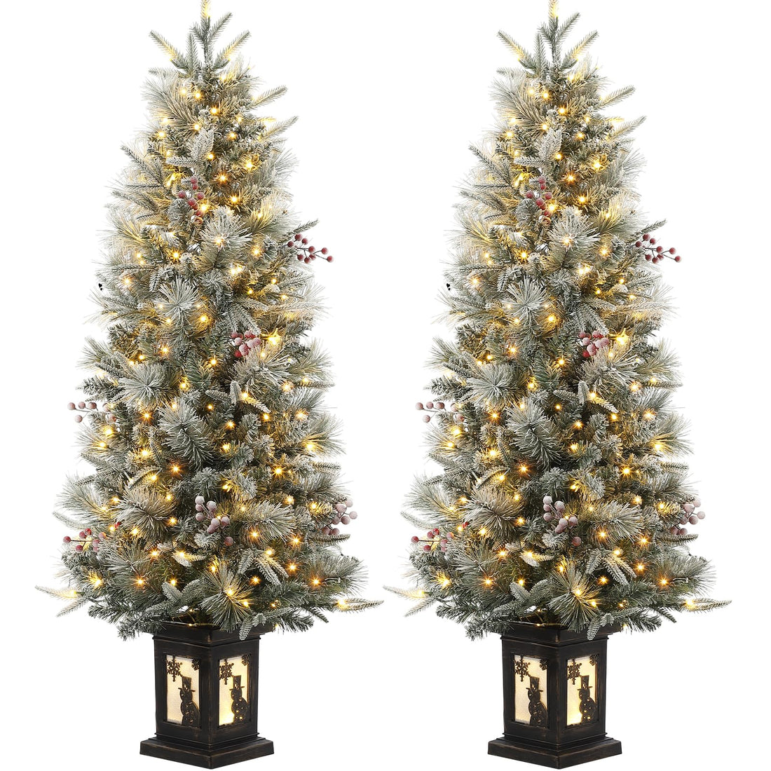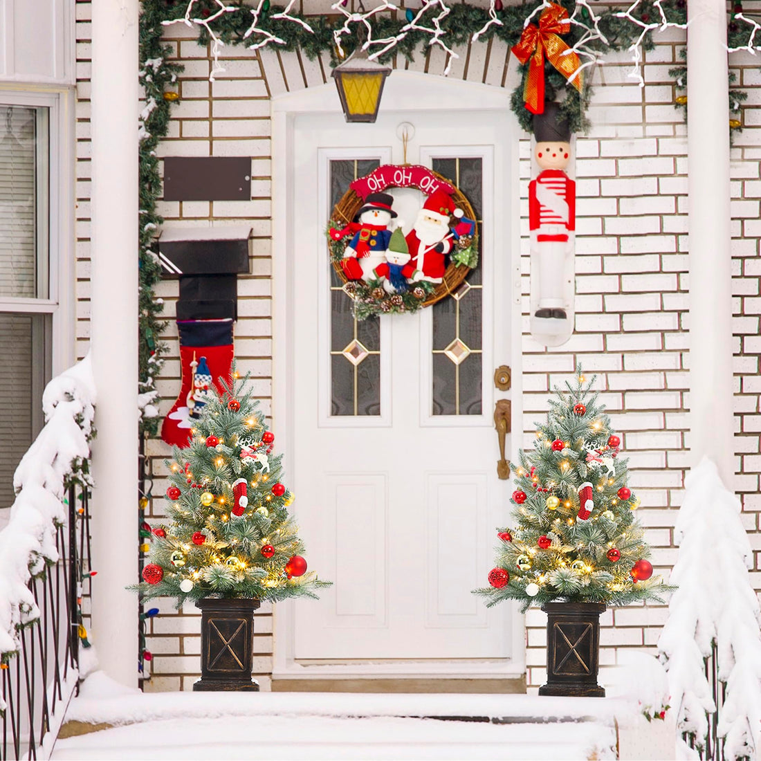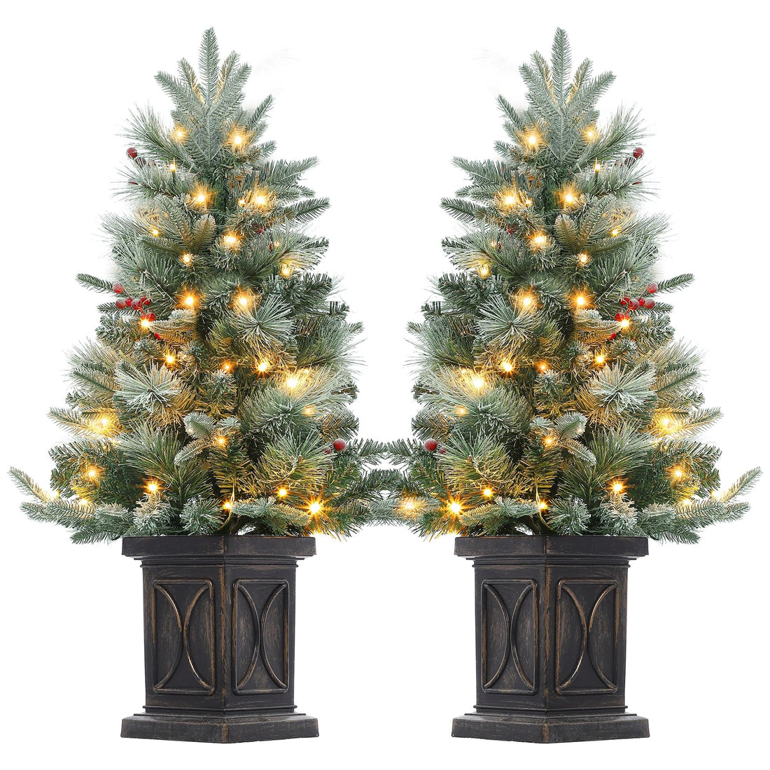 Garvee 3ft Prelit Artificial Christmas Tree with 78 Warm White LEDs, Premium Mini Snow Flocked Xmas Pine Tree for for Front Door, Porch, Entryway, Fireside Christmas Decoration, 2 PCS