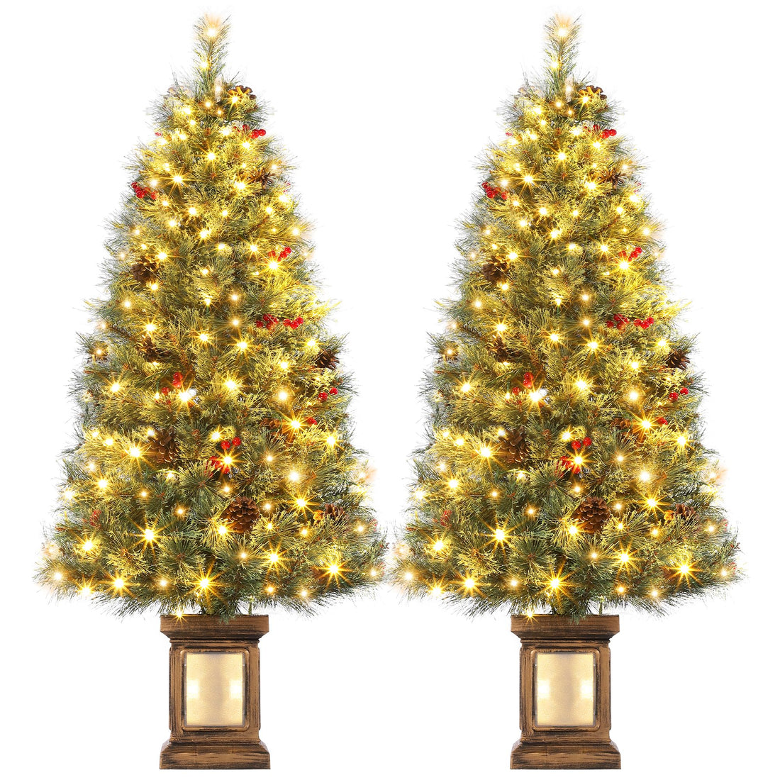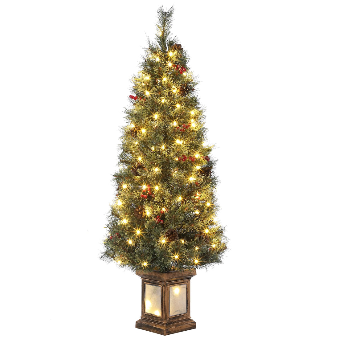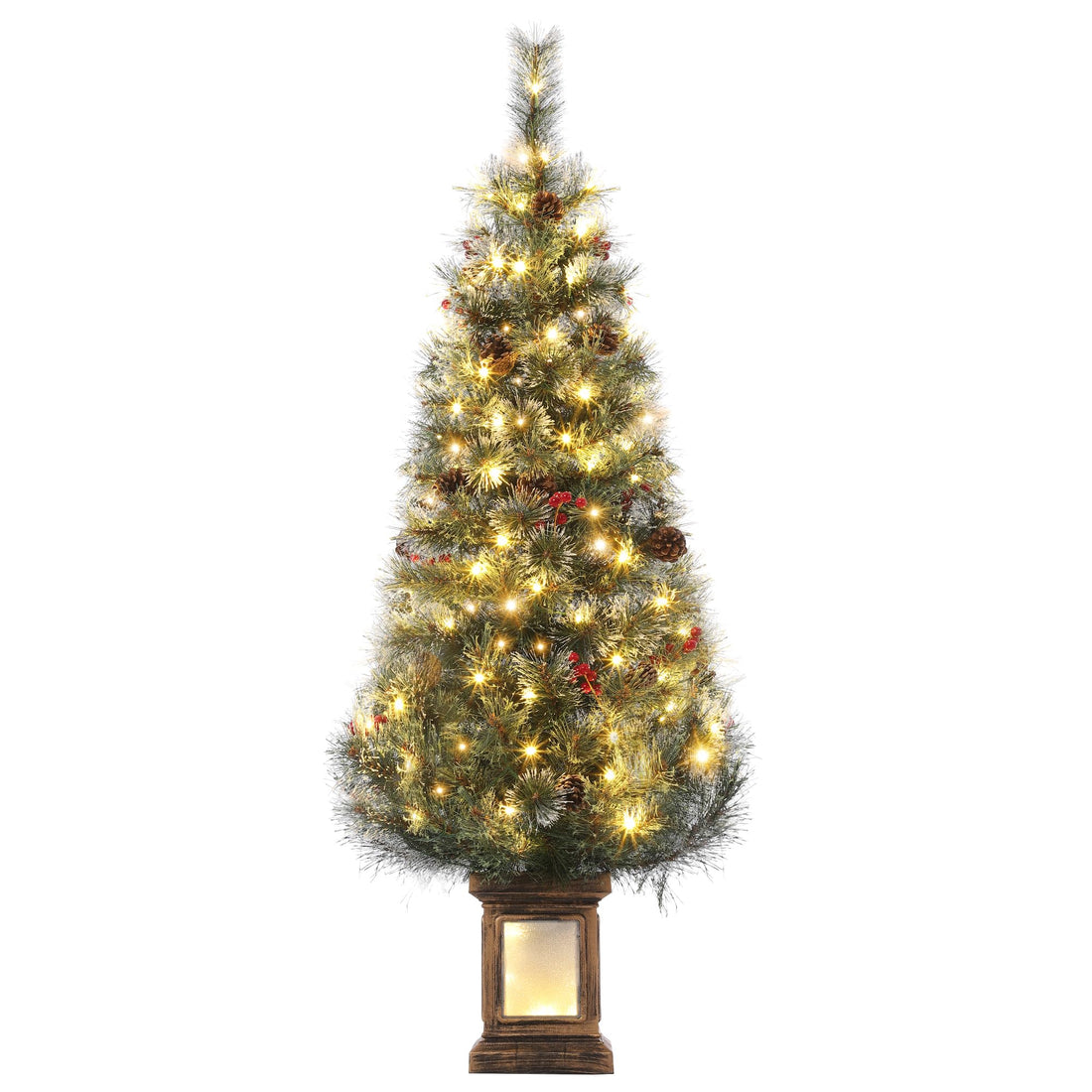 Garvee 6ft Prelit Christmas Tree, Pencil Christmas Tree with Pine Cones & Berries, 250 Warm White Lights-8 Modes, Metal Stand, PE & PVC Xmas Trees for Porch, Church, Home Decor