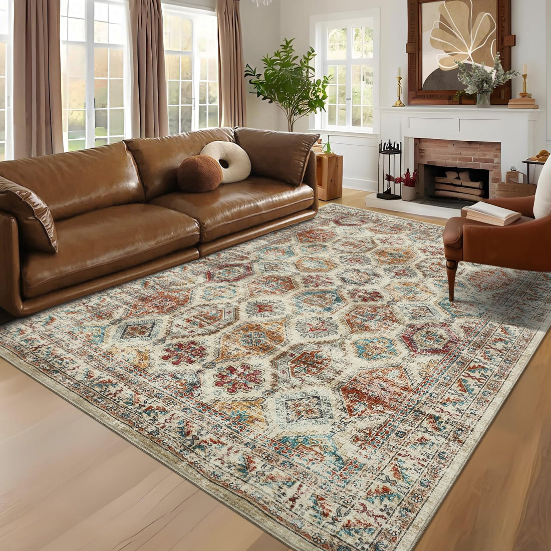 Garvee 8x10 Washable Area Rug Large Living Room Rug Indoor Non-Slip Boho Rug Stain Resistant Geeometric Bedroom Rug Dining Room Accent Rug Moroccan Throw Floor Carpet for Home Office