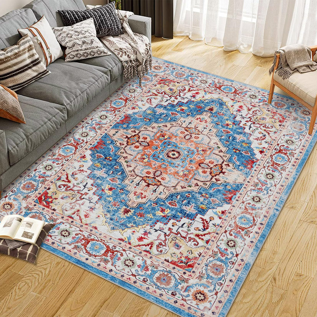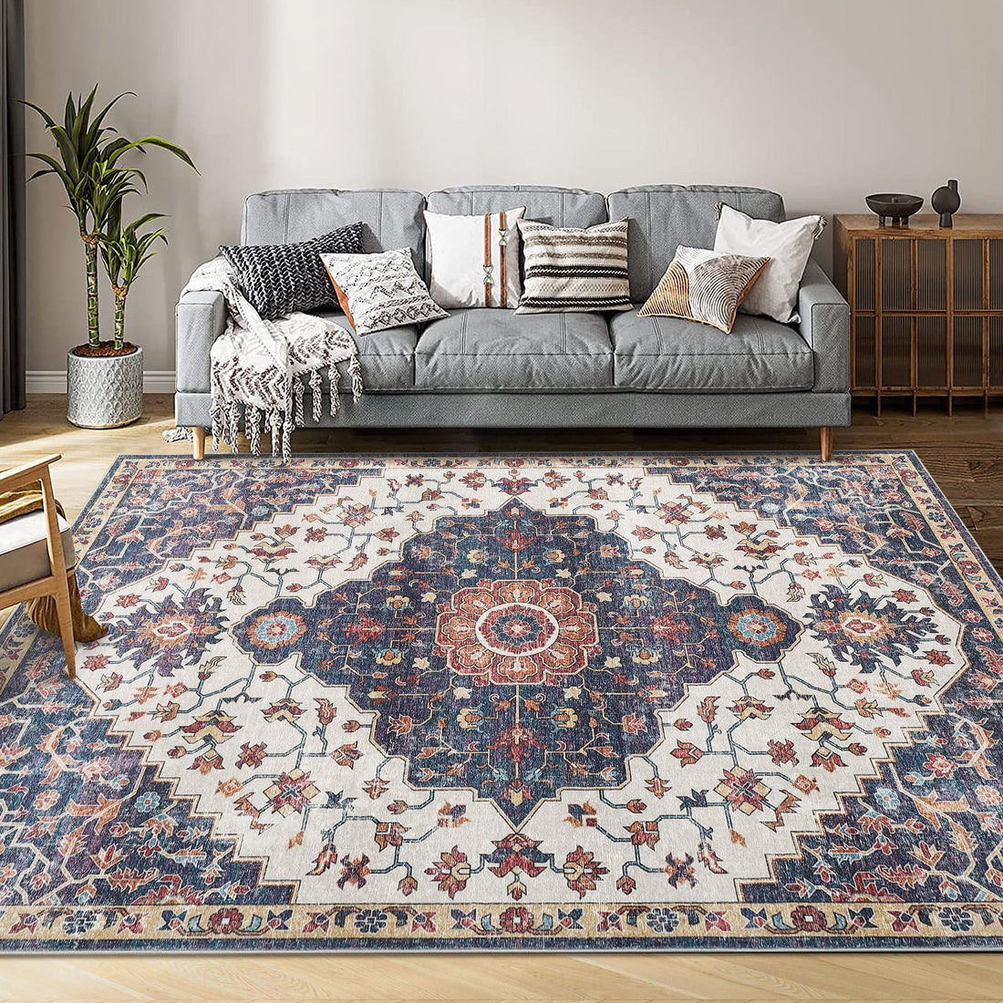 Garvee Vintage Area Rug Colorful Washable Rug Living Room Rug Bedroom Rug Indoor Carpet Tribal Distressed Rug Retro Accent Throw Rug