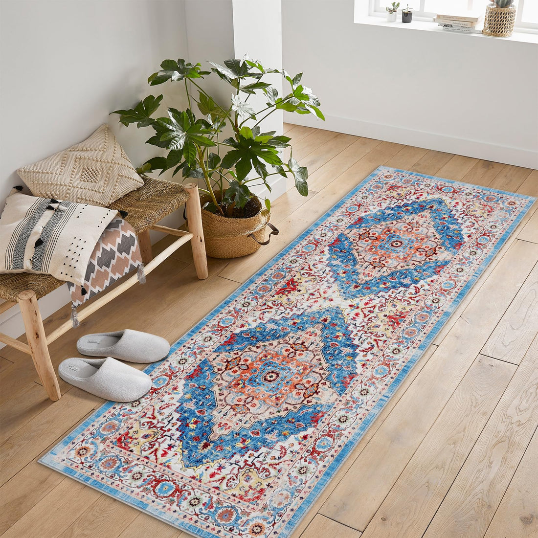 Garvee Runner Rug Entry Rug Carpet Runners for Hallway 6ft Non Slip Bathroom Rugs Washable Rugs Boho Rug Floral Oriental Rug Throw Rugs Stain Resistant Area Rugs Entryway Rugs Indoor Rug 2'x6' Multi