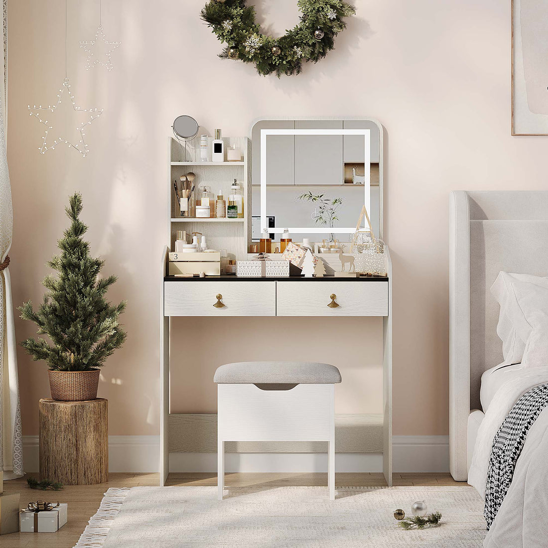 Garvee 31.5" Vanity Desk with Stool, Makeup Table with 2 Drawers, Makeup Vanity Desk with Touch Light Mirror- White