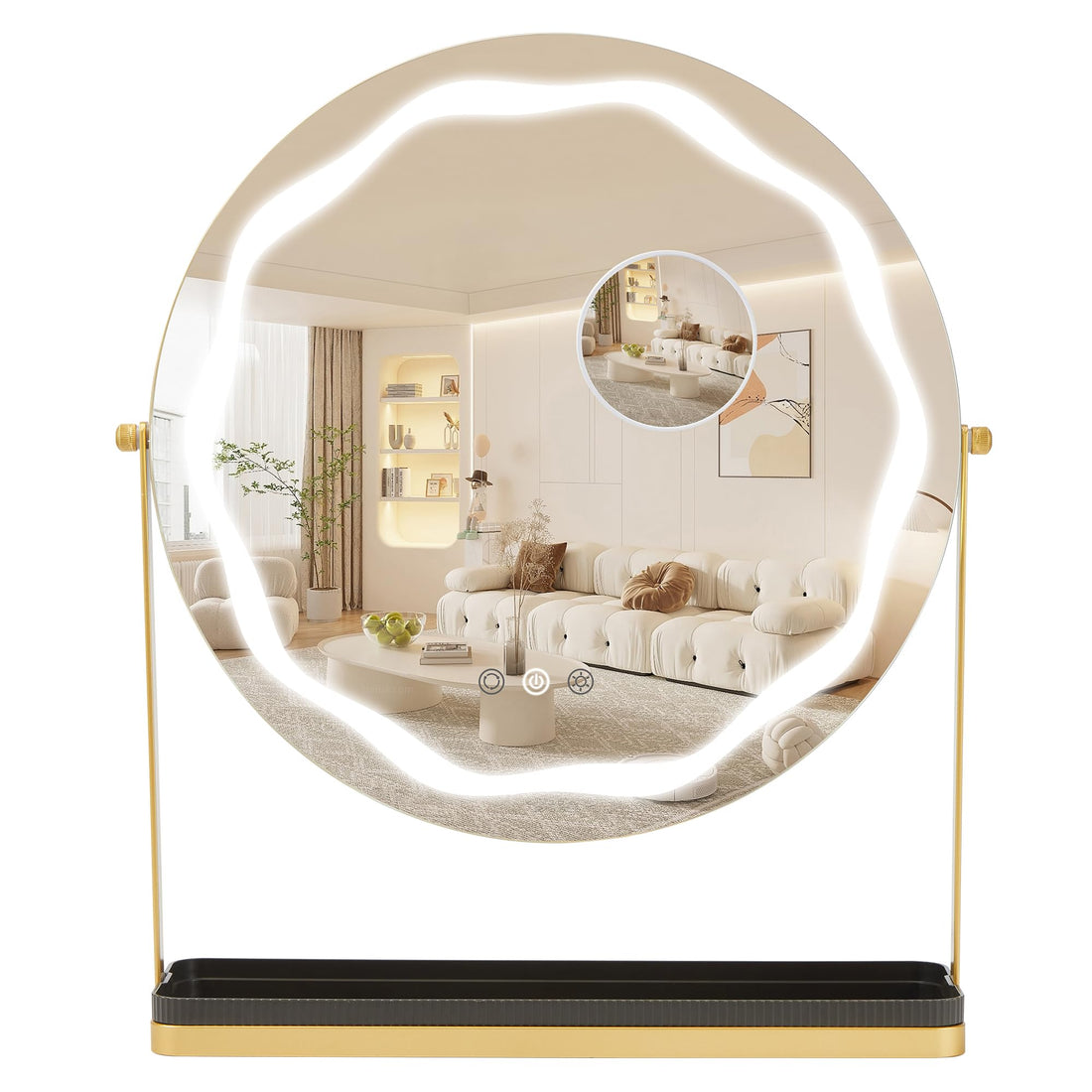 Garvee Vanity Mirror with Lights, 19" LED Makeup Mirror, Smart Touch Control, 3-Color Dimmable Lighting, 360° Adjustable for Bedroom, Dressing Table, Gold