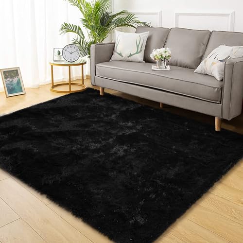 Garvee Fluffy Plush Shag 5x7 Area Rug | Washable Non-Slip Backing & Soft | Large Accent Rug for Living Room, Bedroom, Nursery Decor Black