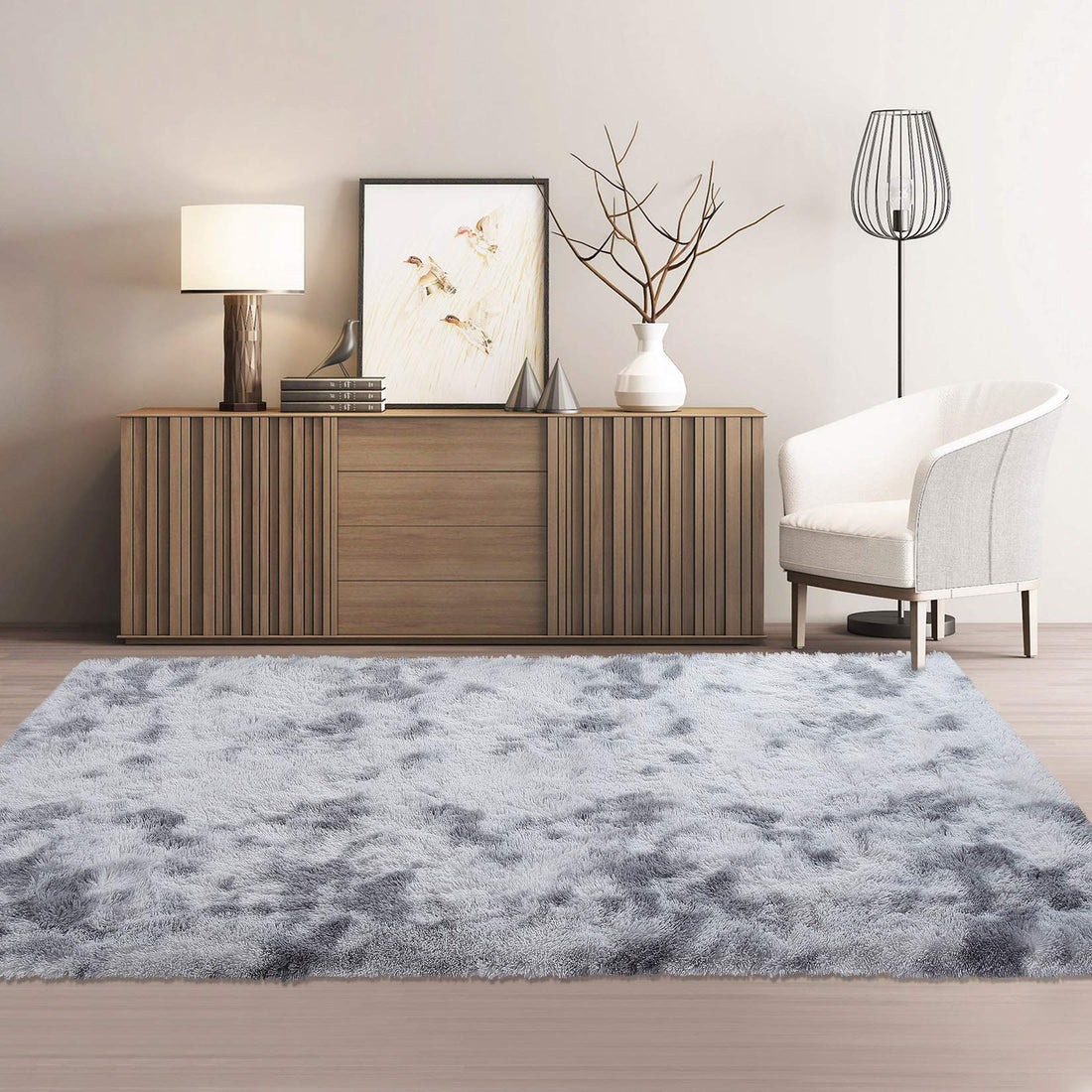 Garvee Fluffy & Sheepskin Light Grey 10x13 Plush Thick Shag Rug, Non-Slip Non-Shedding Tie Dye for Bedroom Kids Dorm