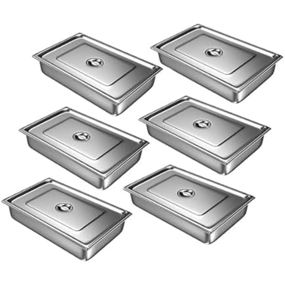 Garvee 6 Pack Stainless Steel Food Pan 2.5" with Lid Table/Hotel Pan for Food Warmer in Gatherings Camping and Restaurants