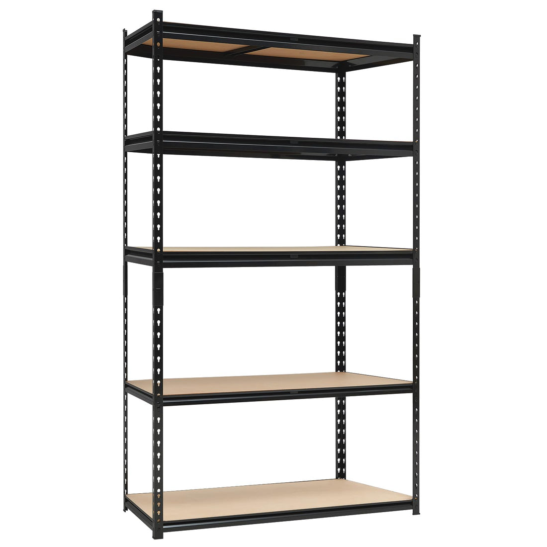 Garvee 5-Tier Storage Shelves, Heavy Duty Metal Shelving Unit, Adjustable Garage Storage Shelving Utility Rack for Warehouse Pantry Kitchen Basement Laundry, Black, 48" L x 18" W x 73" H