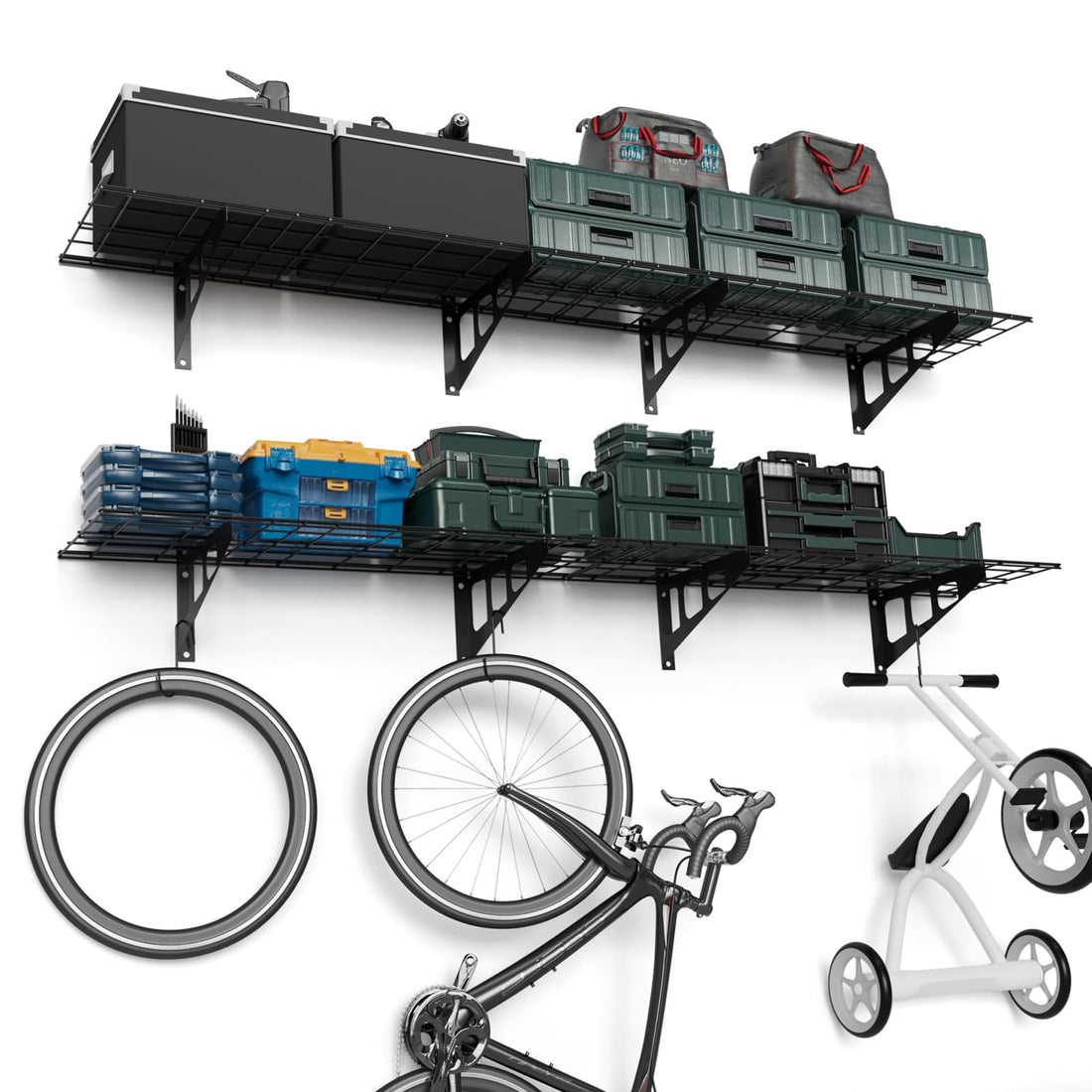 Garvee Heavy-Duty Garage Wall Mounted Shelves 2x4 FT 400 Lbs Load Capacity Metal Steel Sandblasted Surface Hook Design 2 Pack for Garage Shed Shop