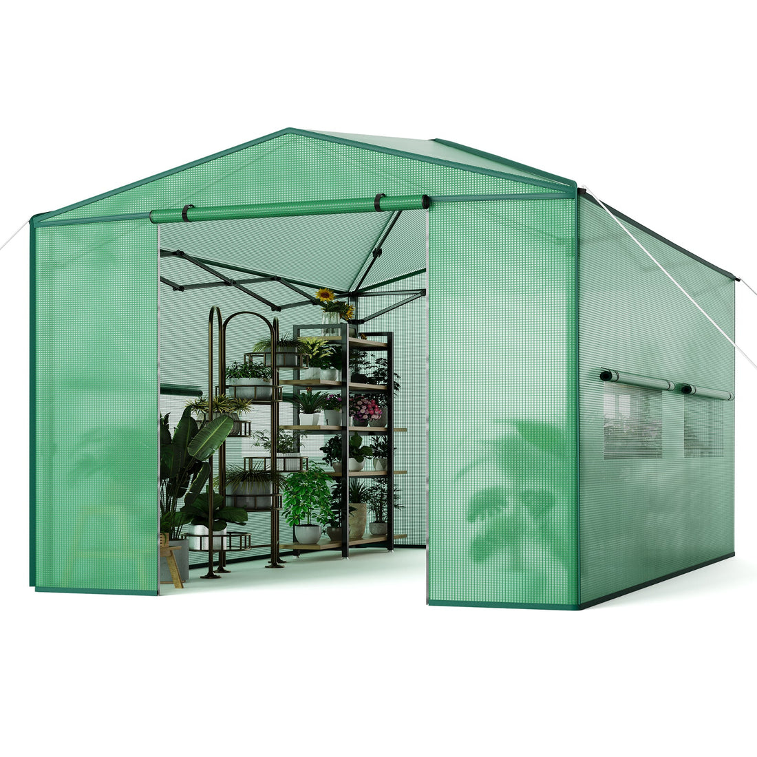 Garvee 13x8x7 FT Walk-in Tunnel Greenhouse Hoop House Galvanized Steel Frame, 140g/m² PE Cover, 2 Roll-up Doors & 6 Windows