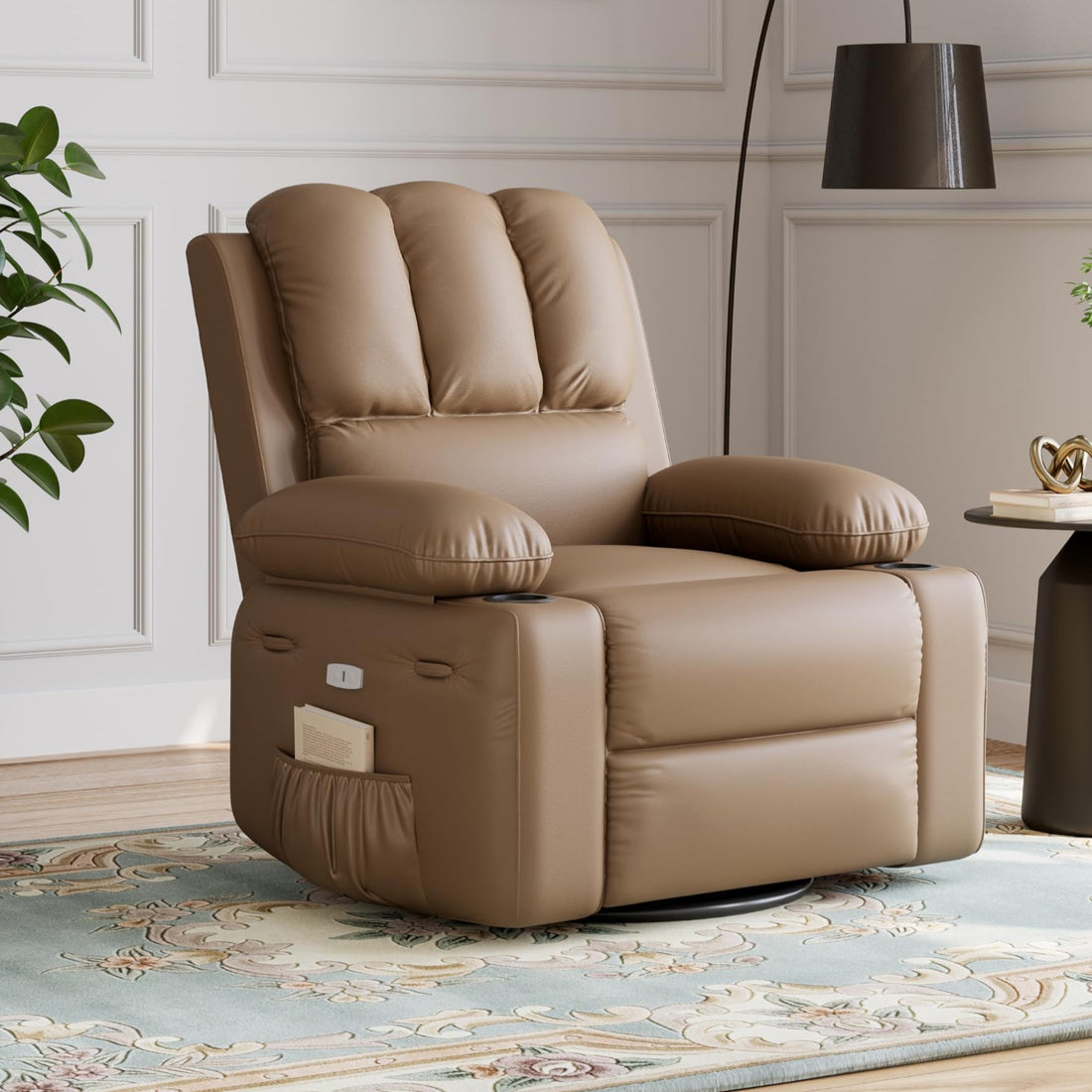 Garvee Oversized Recliner Chairs with Heat and Massage - 360° Swivel Lazy Boy Recliner Chair for Adults- Manual Rocking Chair with Cup Holder for Living Rooms, Bedrooms and Nurseries - Coffe