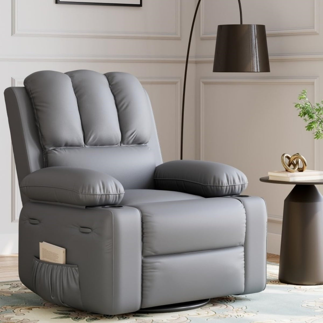 Garvee Rocker Recliner Chair with Heat and Massage, Manual Recliner 360° Swivel Oversized Chairs for Adults, Lazy Boy Single Sofa Seat with 3 Positions, 2 Side Pockets, Cup Holders, and USB Ports