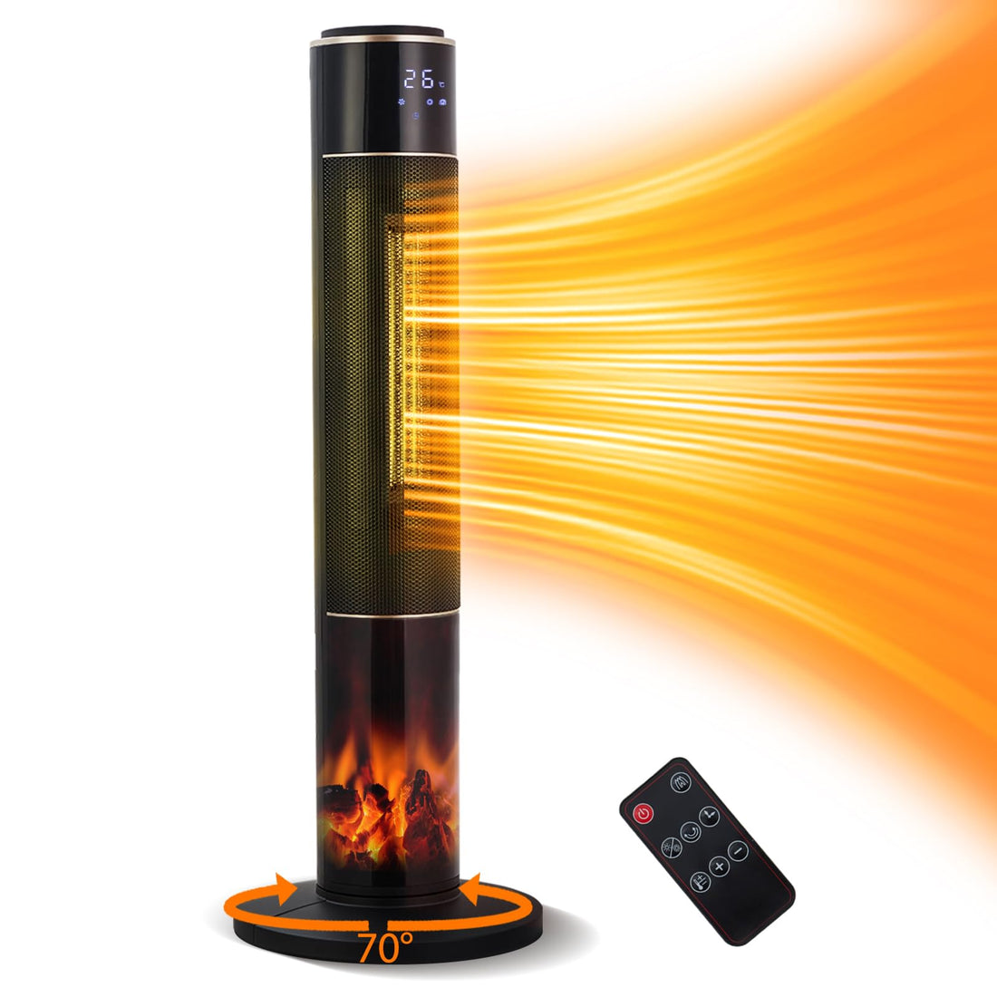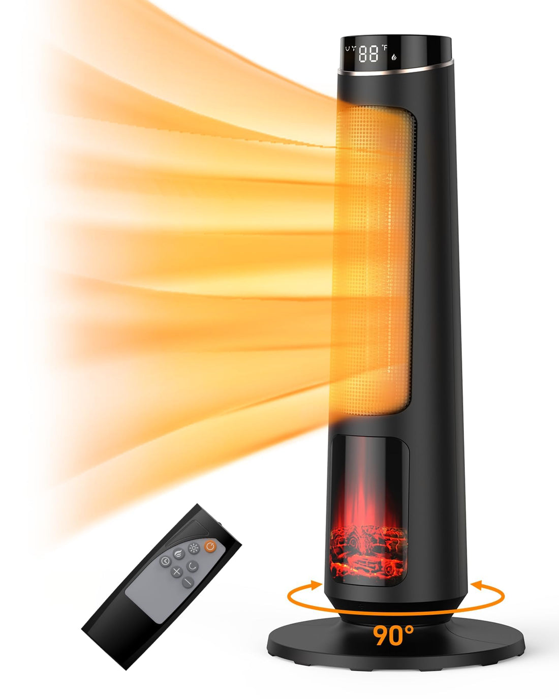 Garvee Space Heater for Indoor Use, 34" Electric Heater Large Room with Flame, 8H Timer, Portable Heaters for Office, Tower Heater and Fan Combo with Remote, Thermostat, 3 Modes Ceramic for Bedroom Bathroom