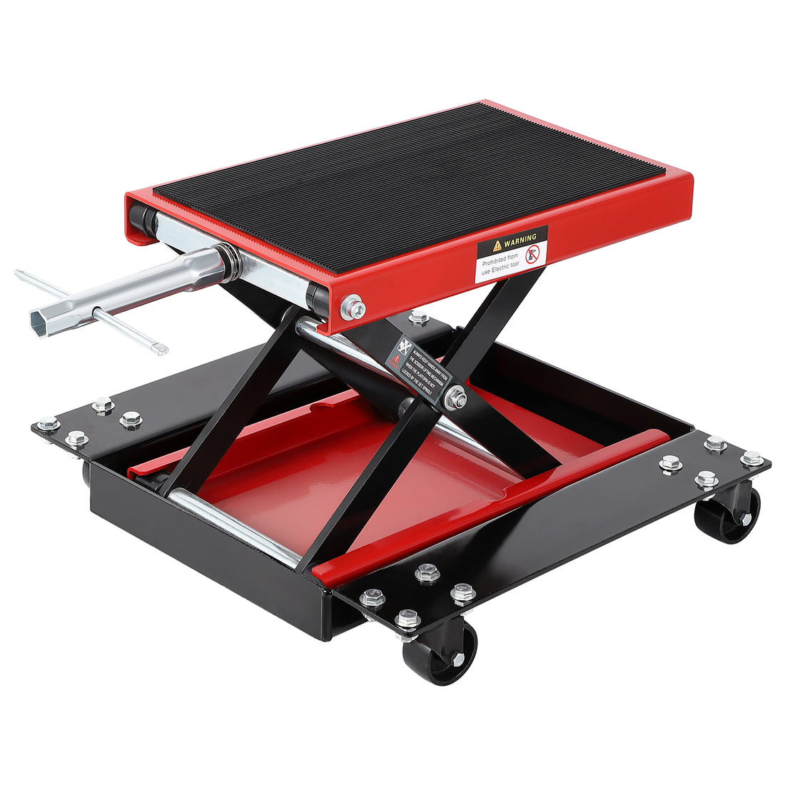 Garvee 1100 LBS Motorcycle Dirt Bike Scooter Crank Stand Without Casters, Wide Deck Motorcycle Center Scissor Lift Jack Repair Hoist Stand Bikes ATVs