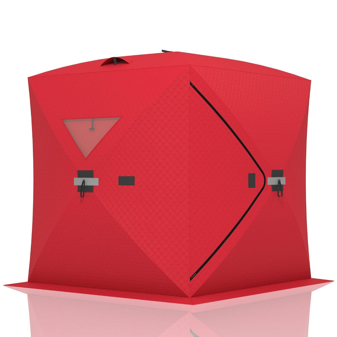 Garvee Insulated Pop-Up Ice Fishing Tent for 3-4 Persons - Portable Windproof Winter Shelter - Durable Ice Shanty, Carry Bag, Zippered Door, Anchors, Rope - Red & Black, 70.8×70.8×77.74 Inch | Winter fishing shelter