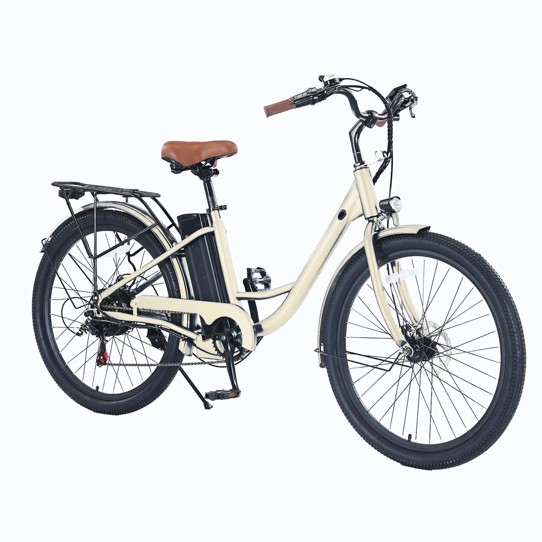 Garvee E-Bike for Adults City 26" Electric Bicycle Women, 350W Brushless Motor, 36V/10Ah Removable Battery, Max Speed 20 Miles/Hour, Use LCD Display, Beige