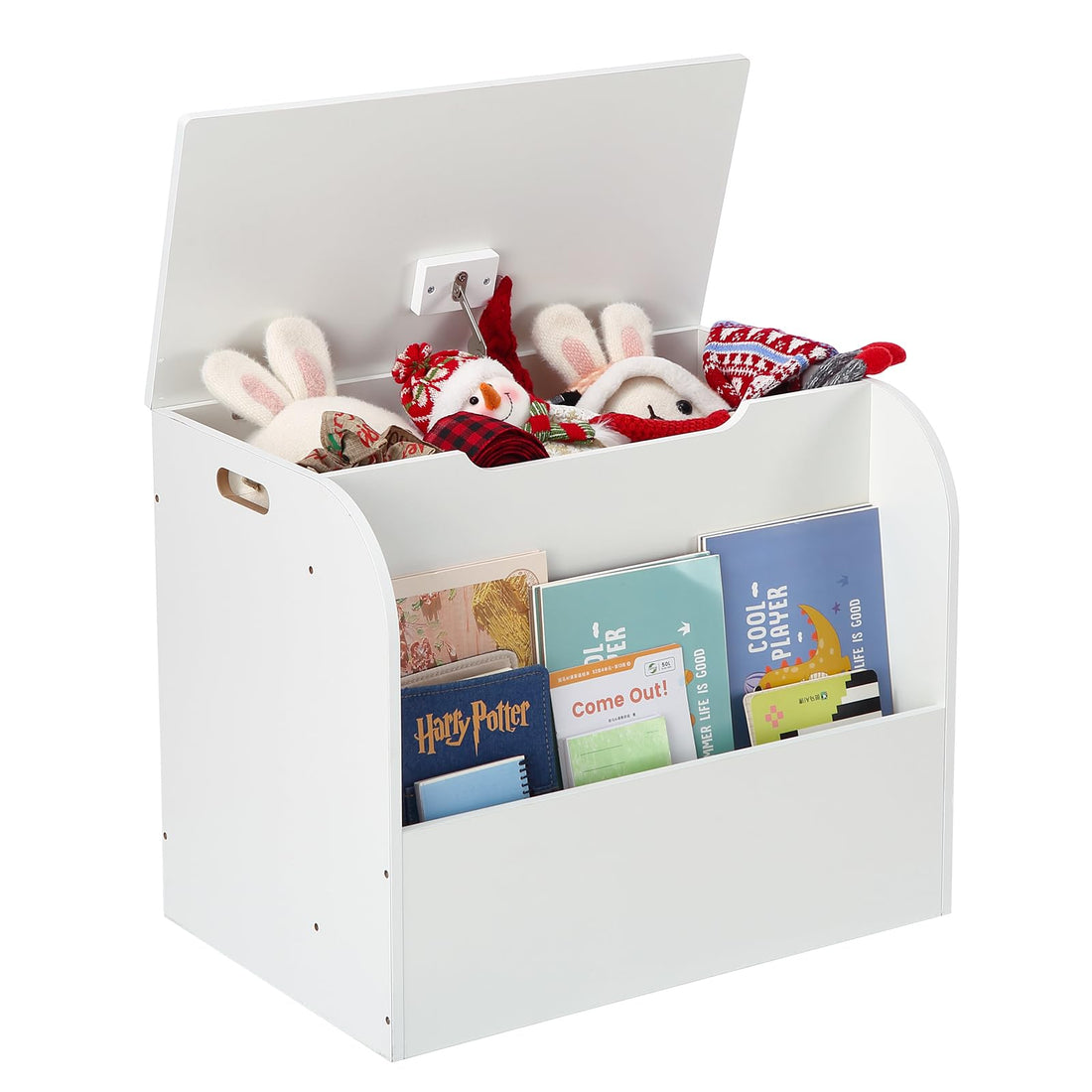 Garvee Kids Wooden Toy Box with Front Bookshelf and Safety Hinges - Storage Organizer for Boys and Girls Home Playroom