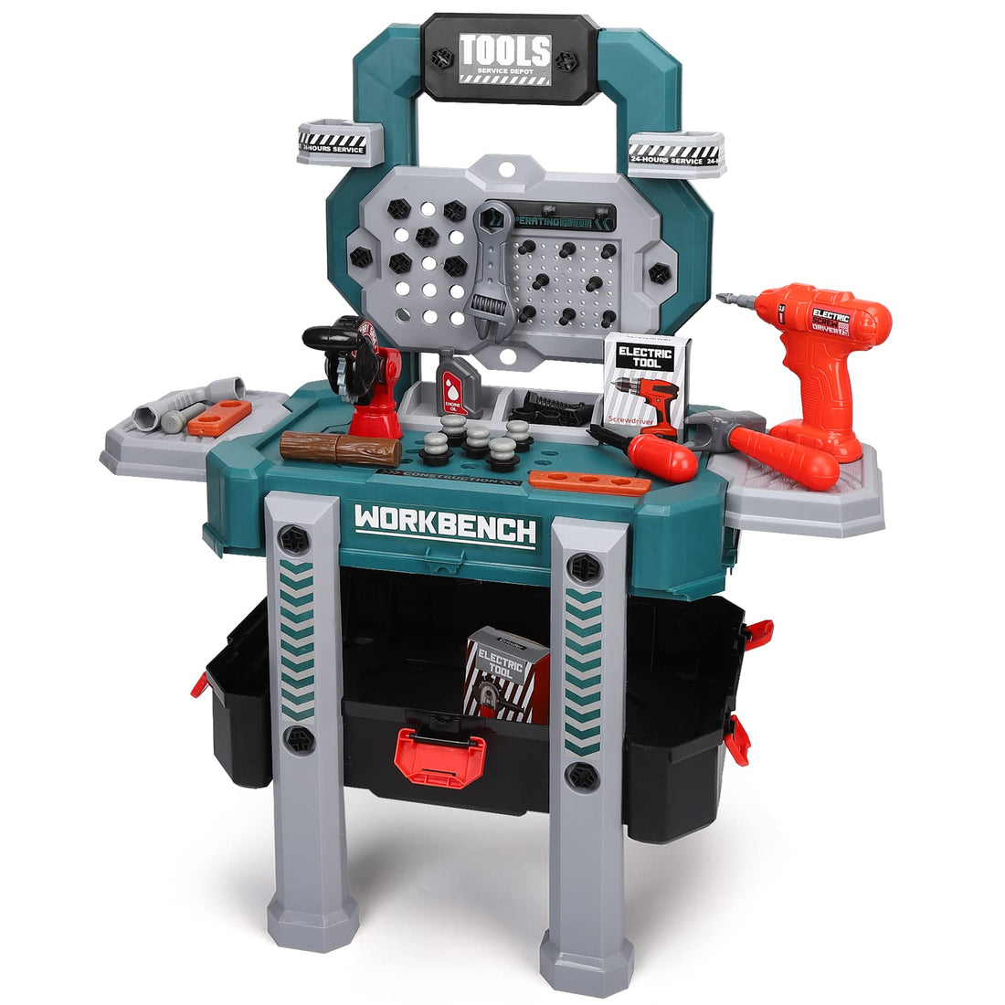 Garvee Workbench with drawers, Pretend Play Toys Workbench for Kids,Workshop with Building Tools Sets,Construction Toys Educational Gift for Toddlers Boys & Girls Age 3-5