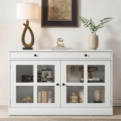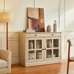 Garvee 35.4" Sideboard Buffet Cabinets With Glass Doors and Drawers, Oak