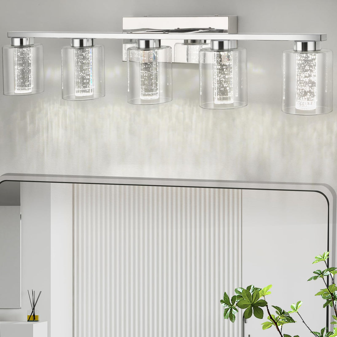 Garvee 5-Light Bathroom Light Fixtures, Chrome Bathroom Vanity Light - 3 Color Dimmable Vanity Lights with Crystal Bubble, Bathroom Lighting Fixtures over Mirror for Bathroom Bedroom Living Room