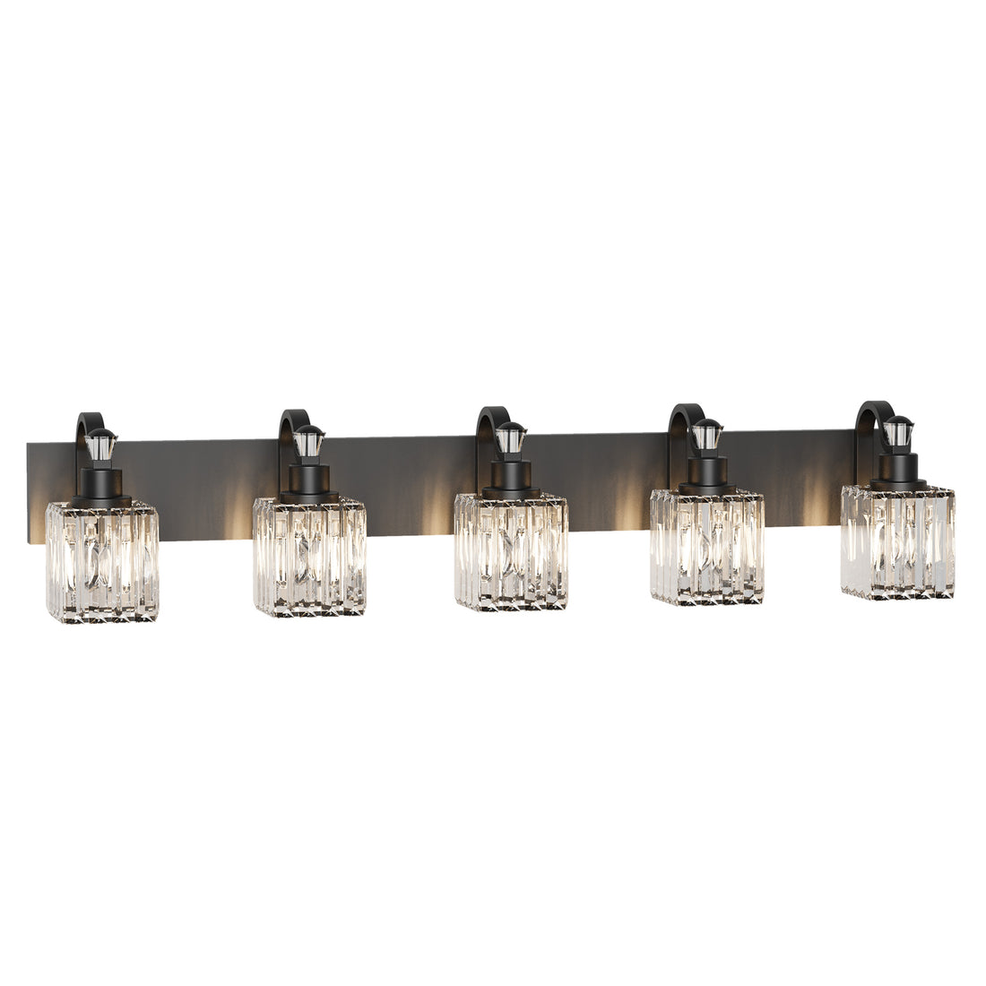 【High-Quality Vintage Design】This 5-light bathroom vanity light features high-quality mirrored chrome finish and premium transparent...