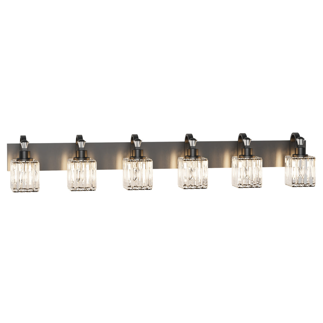 Garvee Modern Glass Bathroom Vanity Lights Chrome Bathroom Light fixtures Crystal Vanity Shower Lights Over Mirror Wall Mount Lighting Fixture for Hallway Kitchen Bedroom Living Room, 6 Lights