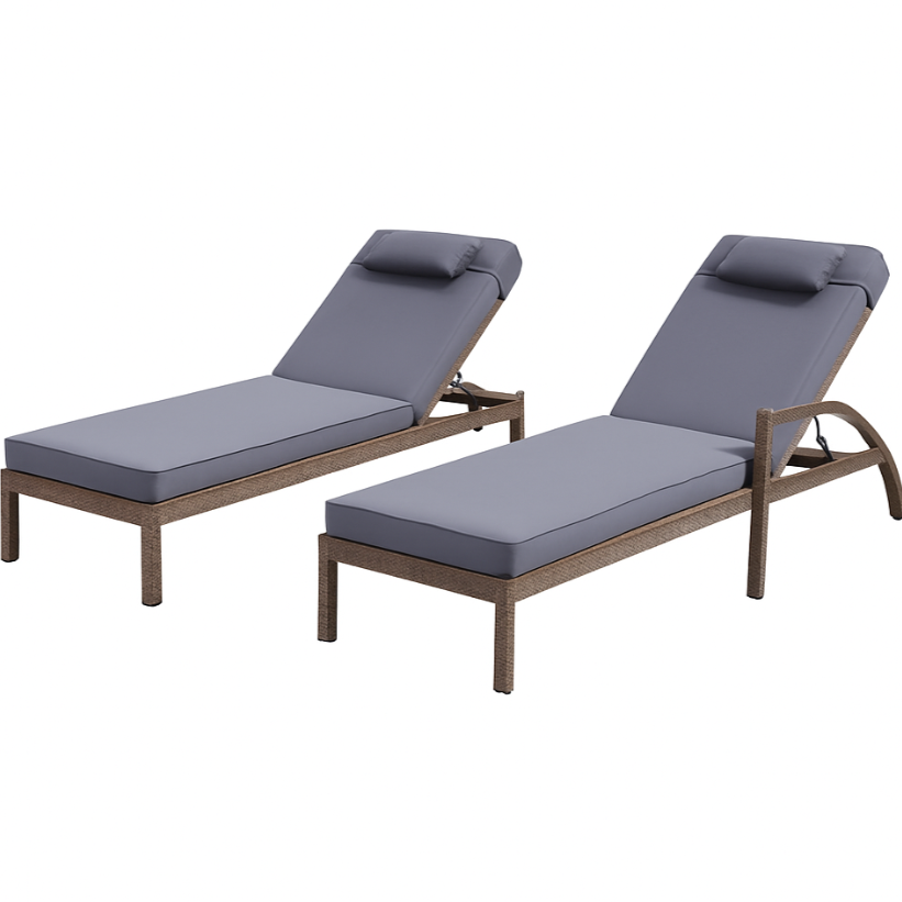 Garvee Set of 2 Outdoor Chaise Lounge Chairs - PE Rattan Recliners with Adjustable Backrest & Side Table, Earth Gray Cushions, All-Weather Steel Frame