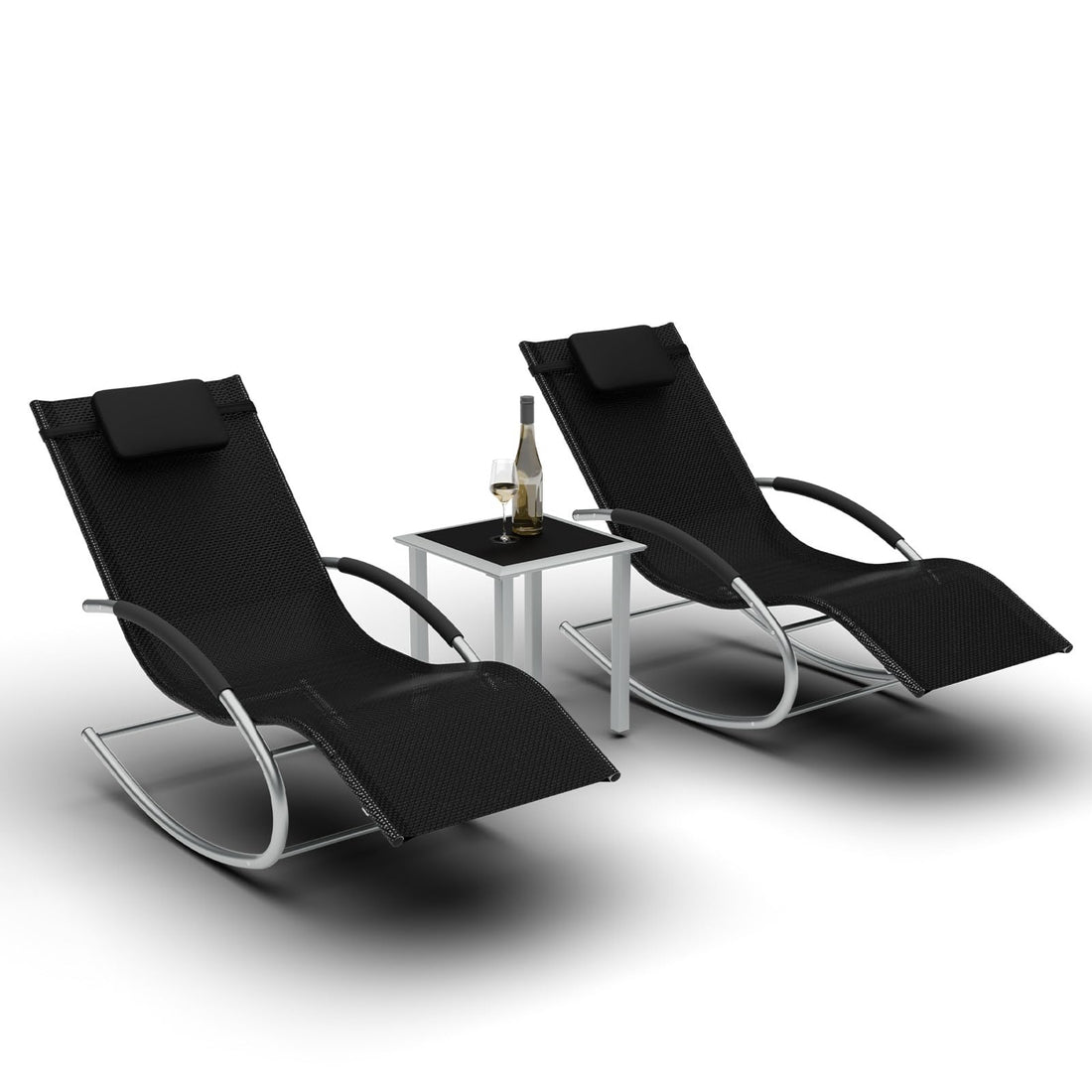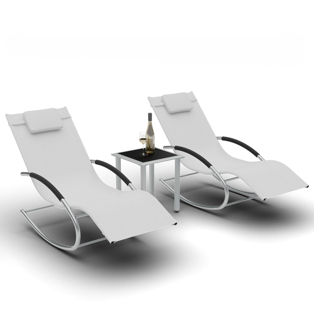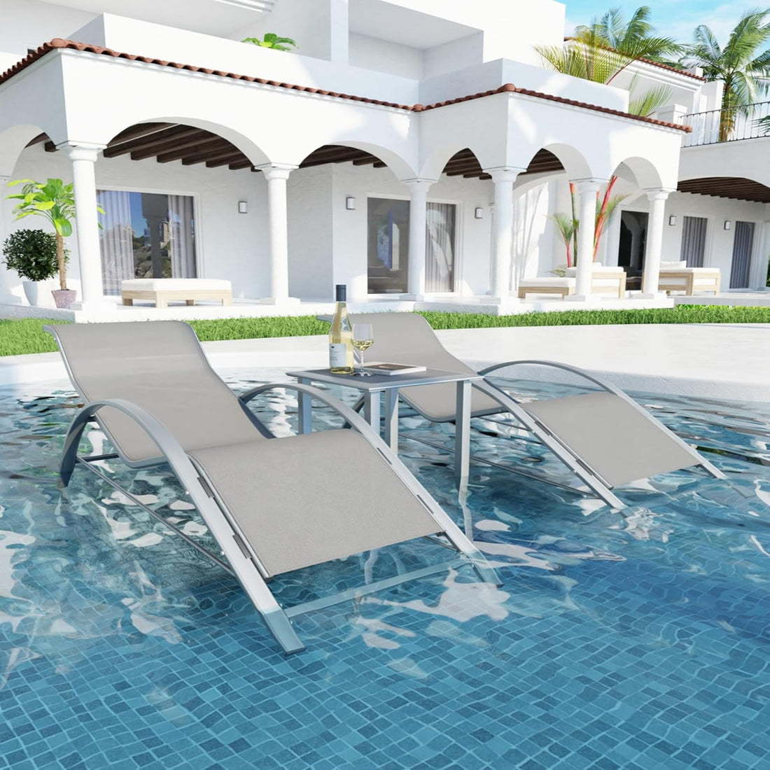 Garvee Outdoor Chaise Lounge Chairs Set of 3, Aluminum Patio Loungers with 2 Chairs and Table, Perfect for Poolside, Garden, and Beach - Modern Design Recliners .
