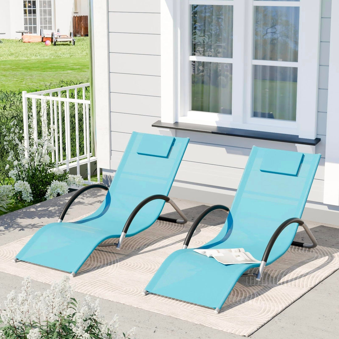 Garvee Outdoor Chaise Lounge Chairs Set of 2 with 3-Position Backrest, Aluminum Pool Chaise Lounges for Pool, Garden, Beach, and Backyard - All-Weather Design, Blue.